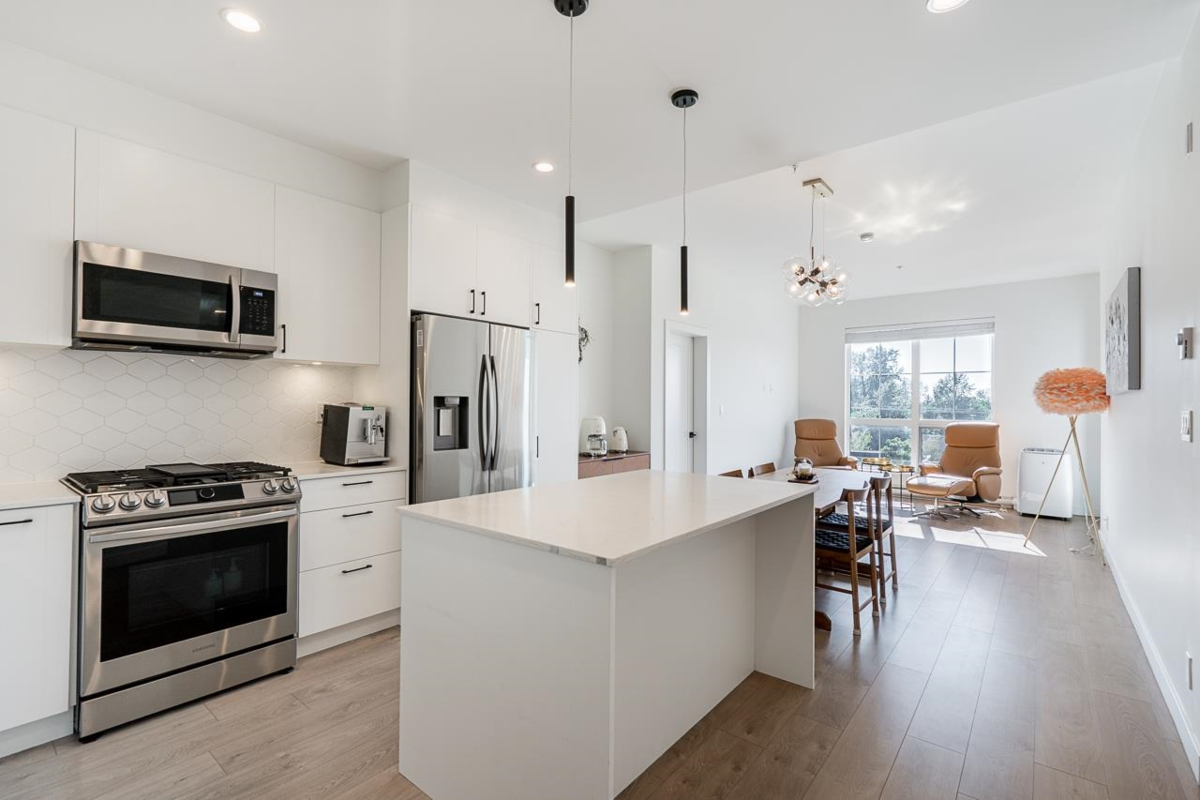 Step into comfort and style in this 3-bedroom, 2-bath and office room condo in Latimer Village. The open layout is filed with natural light through a large window. A stylish office with a interior door, built-in desk, and shelving offers the perfect workspace. Enjoy unobstructed views of greenery from your private balcony. The kitchen features Samsung stainless appliances, quartz counters, and custom cabinetry. The spacious primary bedroom includes a walk-in closet and ensuite with double vanities. Includes a large private storage unit, TWO parking stalls, rooftop putting green, and easy access to Hwy 1.