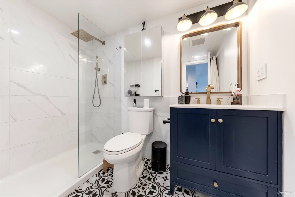 Beautiful unit, Beautiful views, awesome area. Brew pubs,fresh markets, coffee hangouts,restaurants and copious parks dot the neighbourhood . While bbqing on the west facing deck check out the city, lions gate bridge, Burrard inlet and mountain views from this well laid out 1 bedroom that fits a king.Have fun with friends while they gather around the large kitchen island asking "who did your kitchen?".It has loads of storage, new appliances, undermount lighting, stone marble looking countertops and sleek hexagon tile backsplash with undermount lighting.The washroom will make it easy to wake up to with a fantastic walk-in shower with gold plated accents and stylish tiles and vanity.Comes with parking and storage. Pets and rentals allowed.
