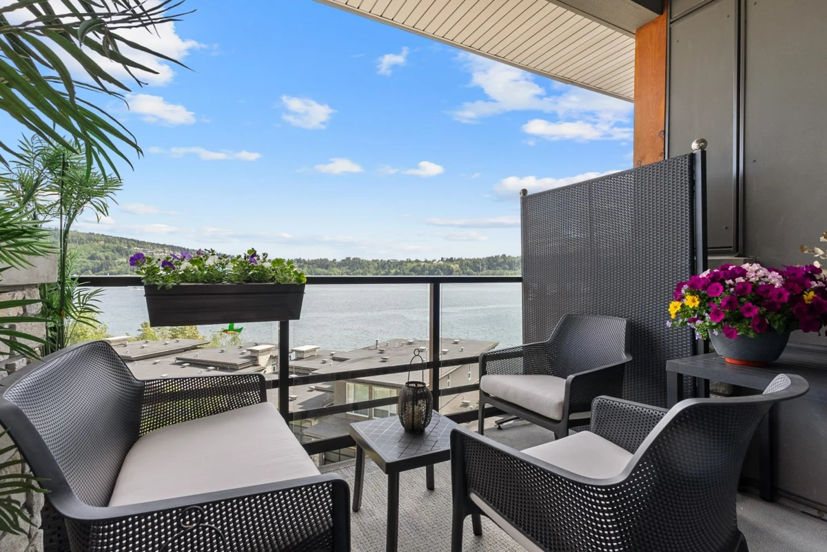 Rare waterfront penthouse in a secluded, private enclave of North Vancouver at Cates Landing. This quiet 1,100 sq ft residence offers 2 bedrooms, 2 bathrooms and sweeping Burrard Inlet views. Tastefully redesigned with custom built-ins, a bespoke entertainment feature, designer lighting, upgraded blinds, new carpeting and fresh paint. Step outside to a serene patio and enjoy immediate access to the private beach, an amenity few even know exists. Includes two secure parking stalls and a rare 8x10 private storage room. Boutique complex with fitness centre, meeting room, guest suite, kayak and bike storage, and dog wash station. OPEN HOUSE Saturday, January 24, 2–4 PM.