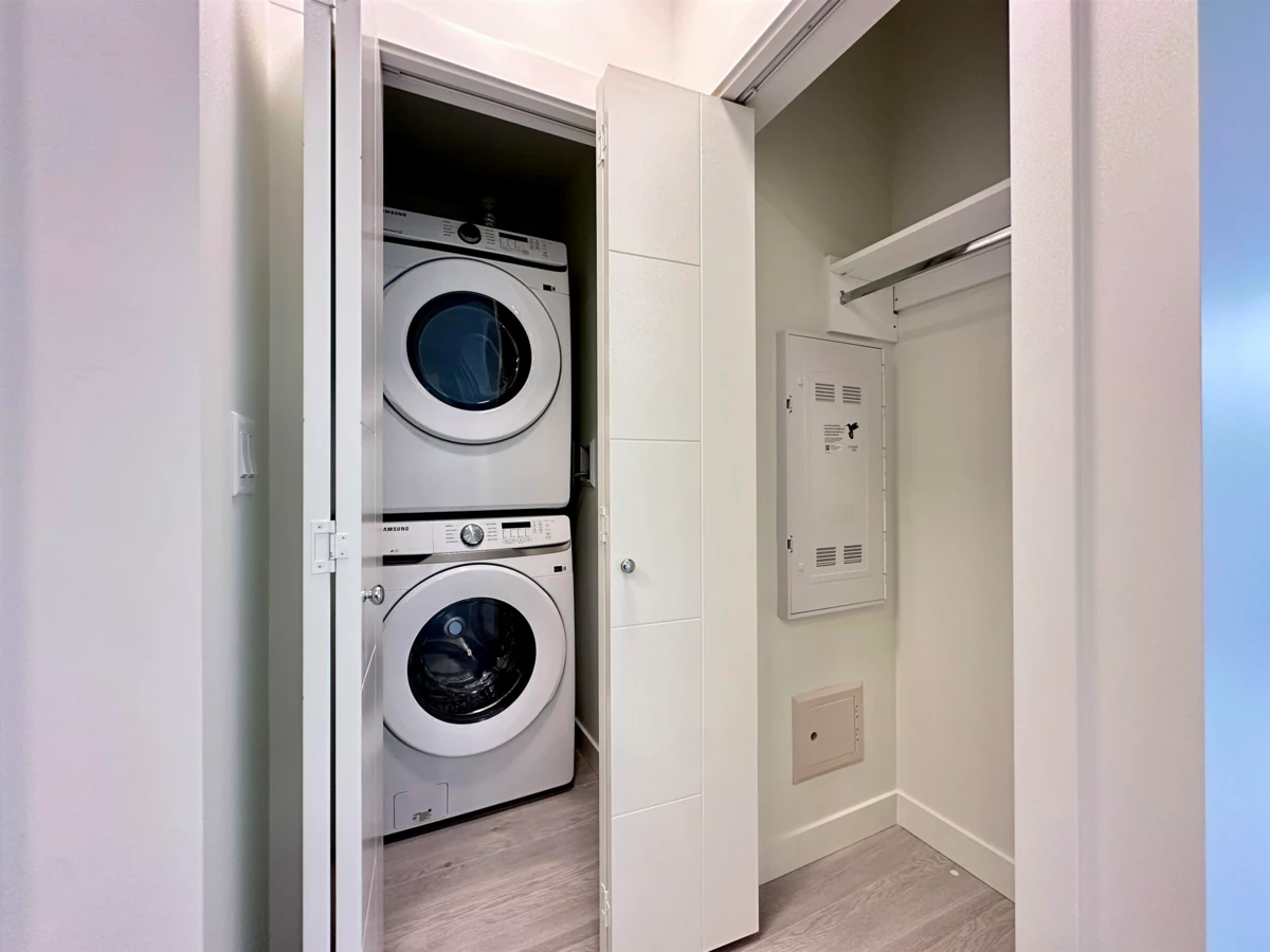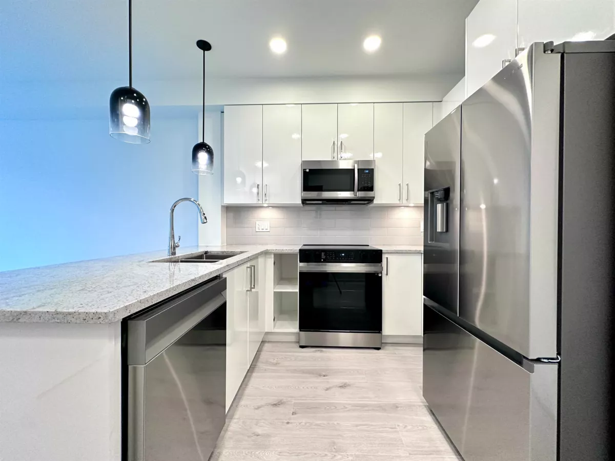 Welcome to Canvas on Brydon Crescent, where energy efficiency meets contemporary design. Enjoy high-quality laminate flooring throughout the living, kitchen, and dining areas, complemented by modern flat panel casings around windows and doors. The 9-foot ceilings in all living areas and bedrooms enhance the sense of space. Dedicated air conditioning plugs in all living rooms and master bedrooms add convenience. This neighborhood is both walkable and commuter-friendly, offering a vibrant and emerging community for you to confidently call home.