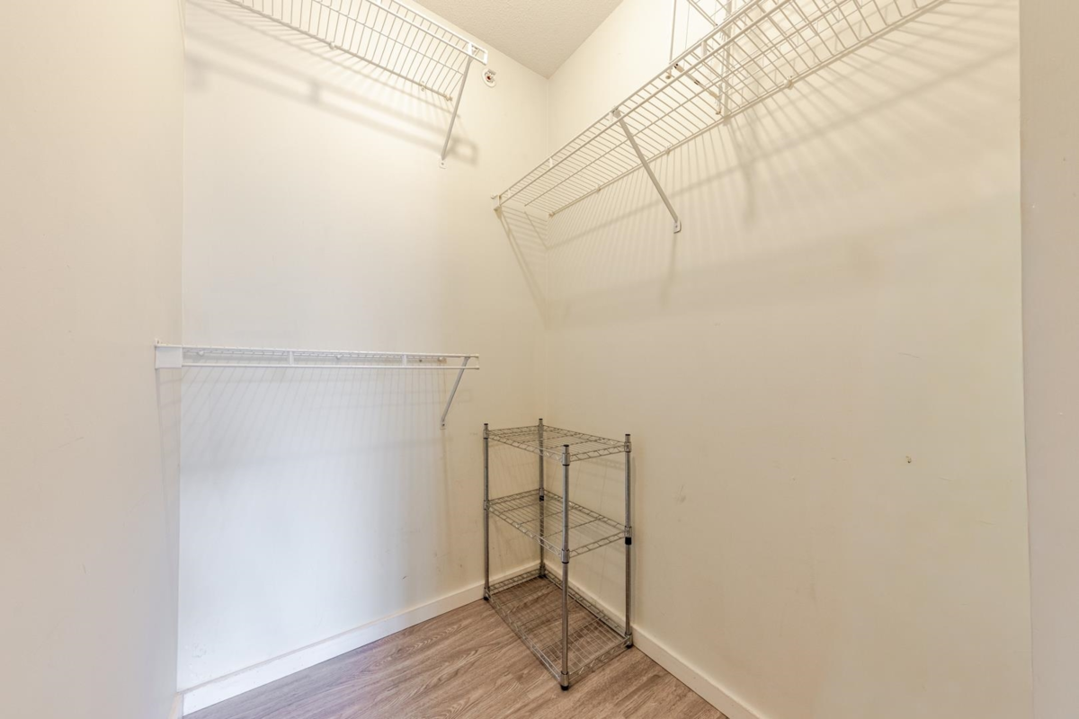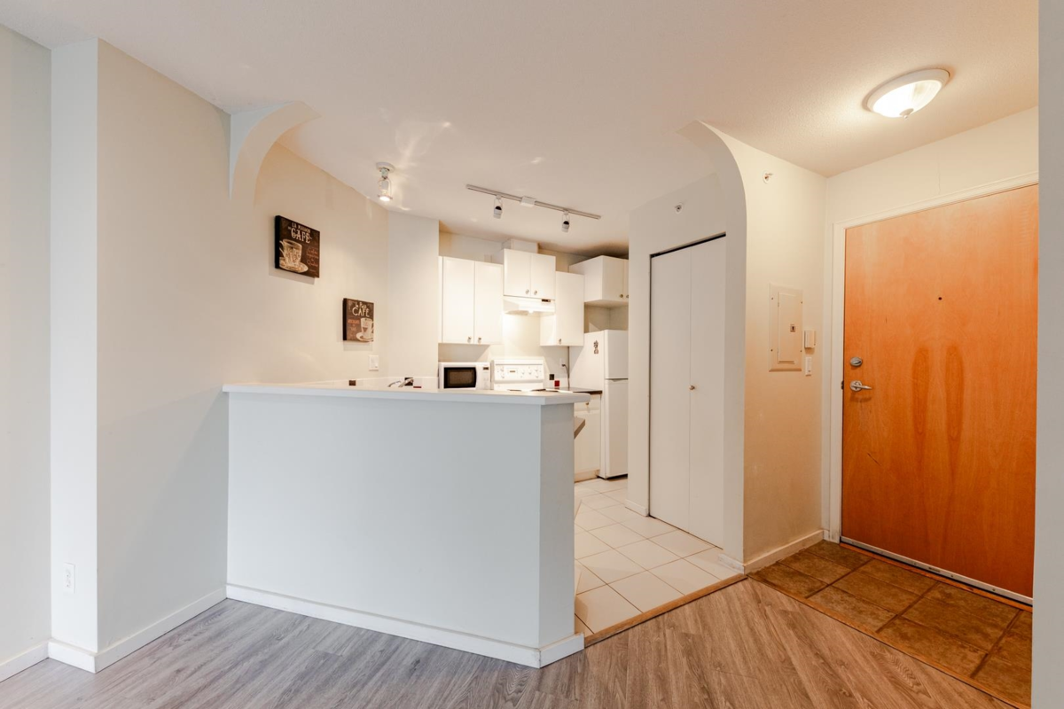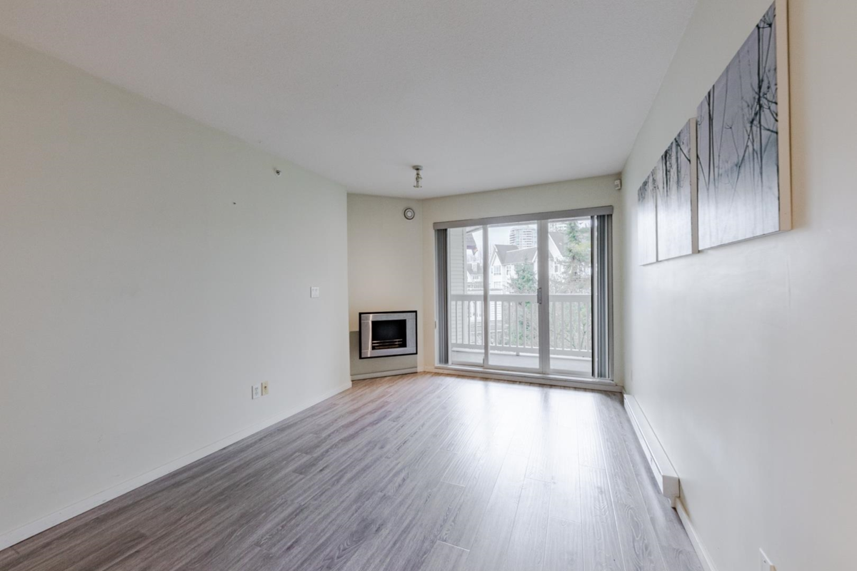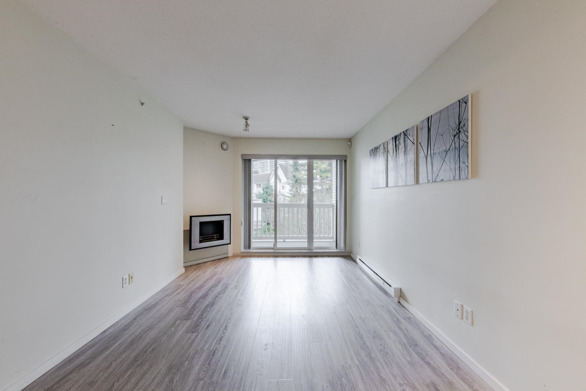 Carmel at the Village by Adera. Bright top-floor 1-bedroom with open-concept layout. Primary bedroom features walk-in closet and ensuite. Balcony overlooks a quiet, green private courtyard. Modern grey laminate flooring throughout, in-suite laundry, underground parking, and low maintenance fees. Rain-screen building in a friendly, tree-lined neighborhood. 1 Parking included. Walk to SkyTrain, Highgate Mall, library, parks, and schools. Minutes to Metrotown. Pet-friendly with no rental restrictions—ideal for end users or investors.