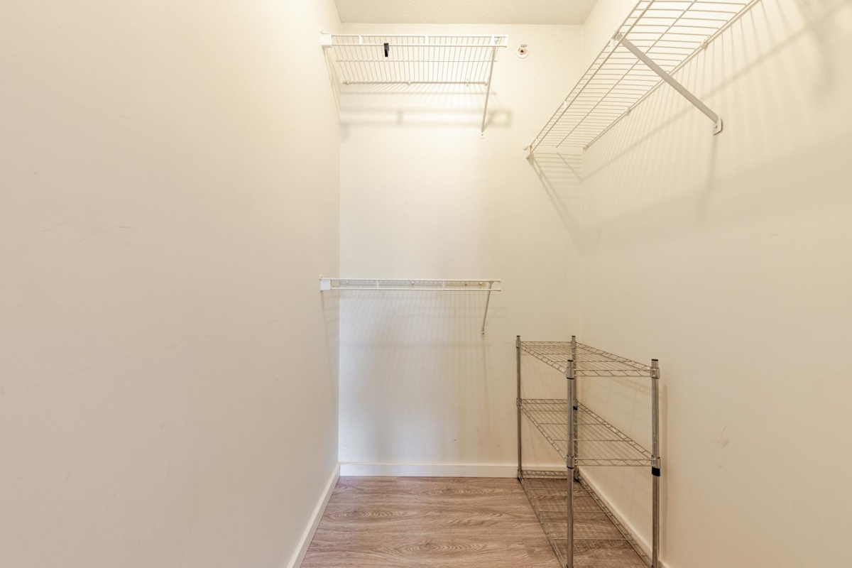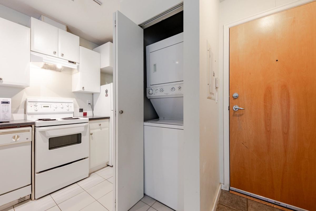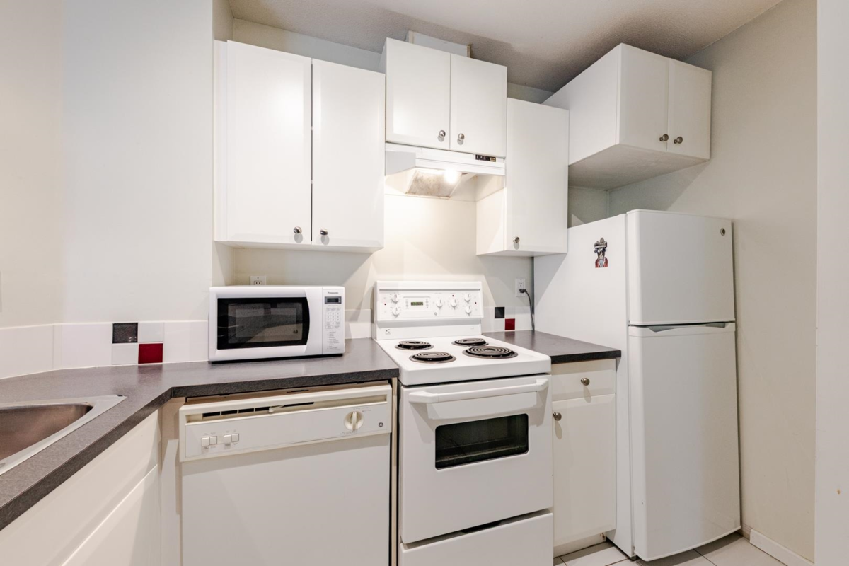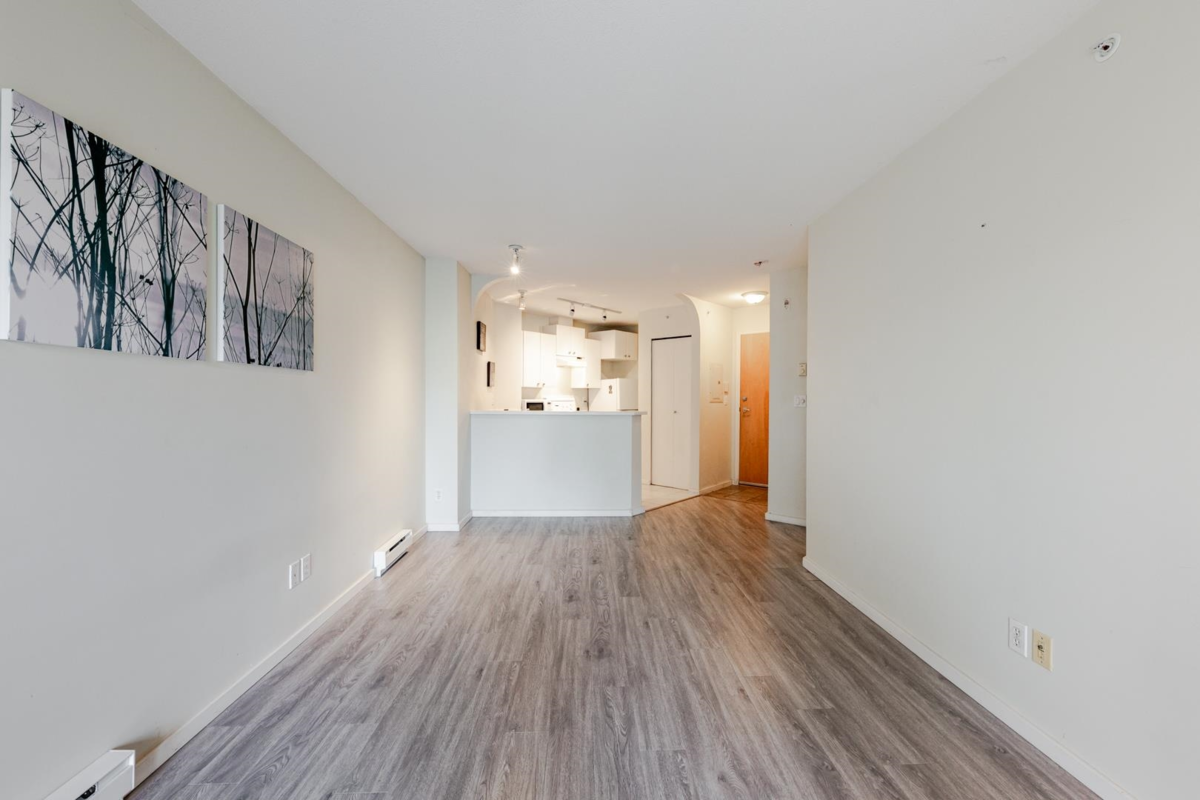 Carmel at the Village by Adera. Bright top-floor 1-bedroom with open-concept layout. Primary bedroom features walk-in closet and ensuite. Balcony overlooks a quiet, green private courtyard. Modern grey laminate flooring throughout, in-suite laundry, underground parking, and low maintenance fees. Rain-screen building in a friendly, tree-lined neighborhood. 1 Parking included. Walk to SkyTrain, Highgate Mall, library, parks, and schools. Minutes to Metrotown. Pet-friendly with no rental restrictions—ideal for end users or investors.