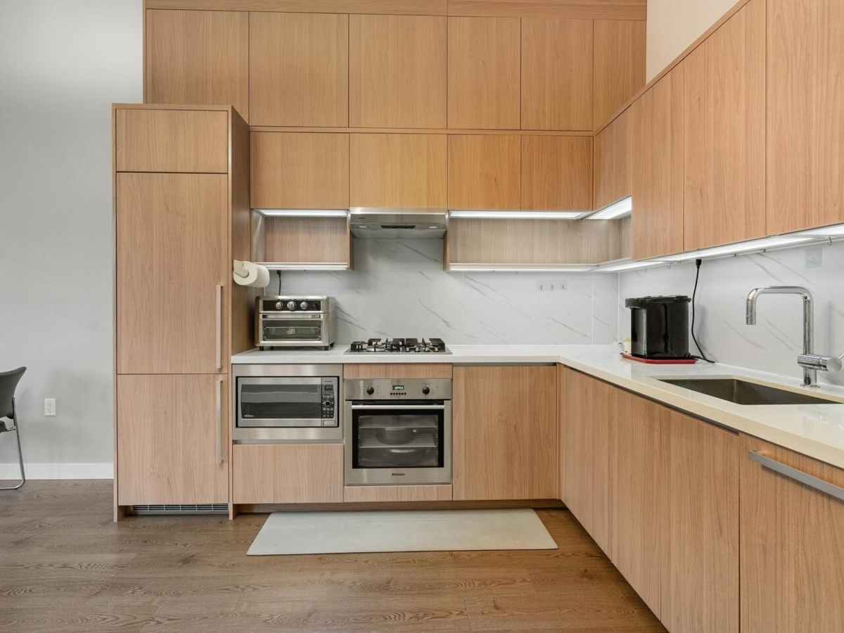 Omega by Concord Pacific ! This bright and spacious 1-Bedroom + LARGE Den PENTHOUSE unit features 12 ft ceiling, central heating & cooling system, stainless steel appliances, built-in fridge, oven & microwave, gas stovetop, quartz stone countertop and under cabinet lighting. The large Dan can be used as the second bedroom. Luxurious amenities include fully equipped fitness centre, game room, entertainment lounge and onsite caretaker. An unbeatable location, Tomsett Elementary, MacNeill Secondary, Walmart, banks and restaurants are just minutes away, making it the perfect choice for a contemporary lifestyle Comes with 1 parking stall. Open House: Jan 3 (Sat) 2-4pm.