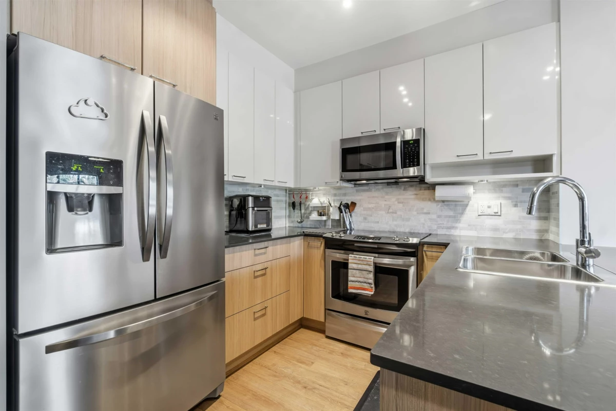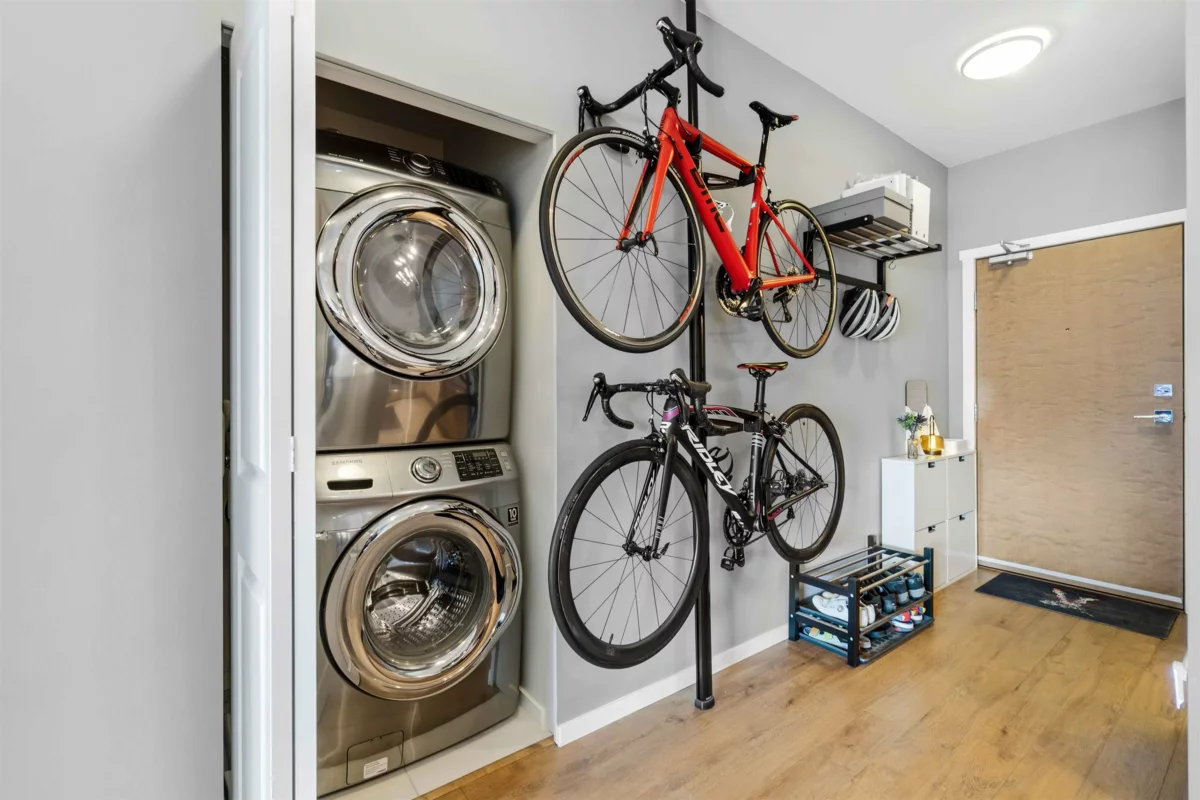 Welcome to MACKIN Park! This bright one-bedroom home offers 538 square feet of well-designed living with a clean, modern feel. The kitchen features stainless steel appliances, laminate flooring runs through the main living space, and the full-size washer and dryer add real convenience. The bedroom is comfortably sized, the bathroom is finished with contemporary details, and the home includes a secured parking stall and storage locker. Enjoy a strong lineup of building amenities, including a Fitness Centre, Bike Room, Car Wash Bay, and Resident Lounge. Located in Coquitlam’s Mackin Park neighbourhood, you’re steps from cafés, shops, parks, and transit, with quick access to Lougheed and nearby routes. It’s a stylish, easy-to-live-in home in a community that keeps everything close!