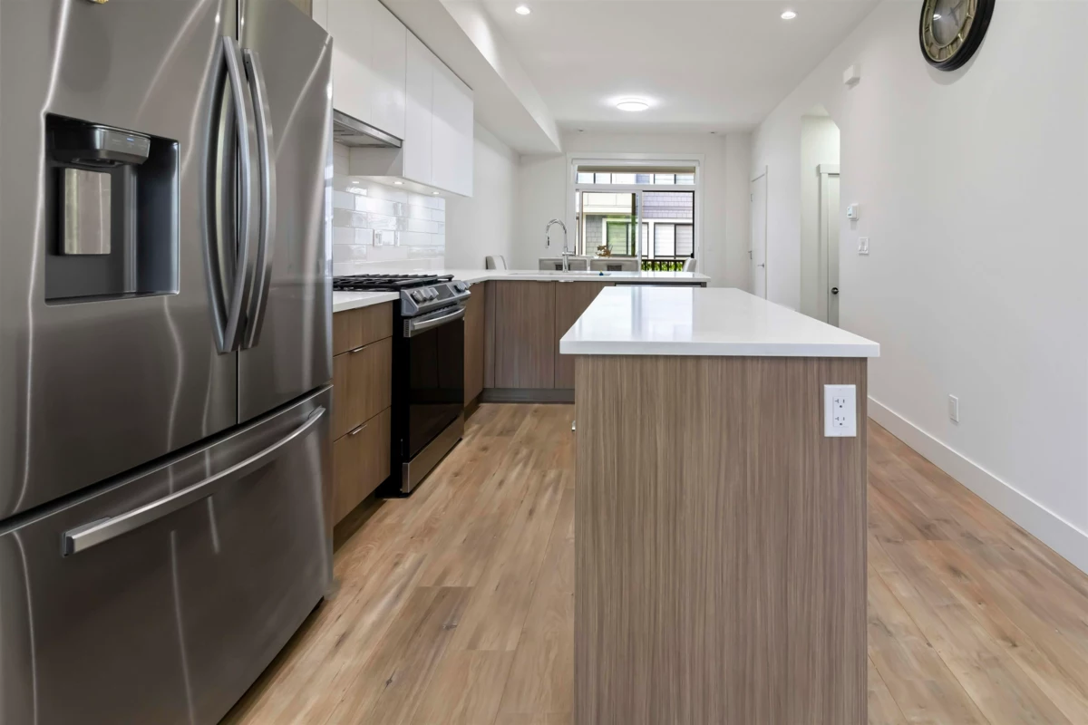 Welcome to Oakcrest Townhomes. This stylish 3 bed, 3 bath townhouse is just 3 years old and offers a bright open layout with a modern kitchen, dining area, powder room, and cozy living space on the main floor. Upstairs features 3 spacious bedrooms, 2 full bathrooms, and laundry on the same level. The home includes central A/C and a tandem 2-car garage. Located close to schools, KPU, parks, shopping, temples, mosque, and church. Easy access to Vancouver, Langley, and the USA border. Still under 2/5/10 warranty. A perfect home for first-time buyers or families. Book your private showing today! Some photos are virtually staged.