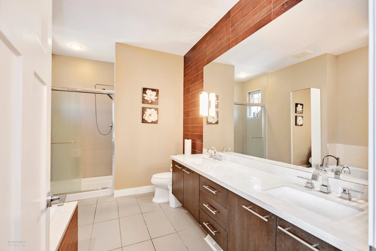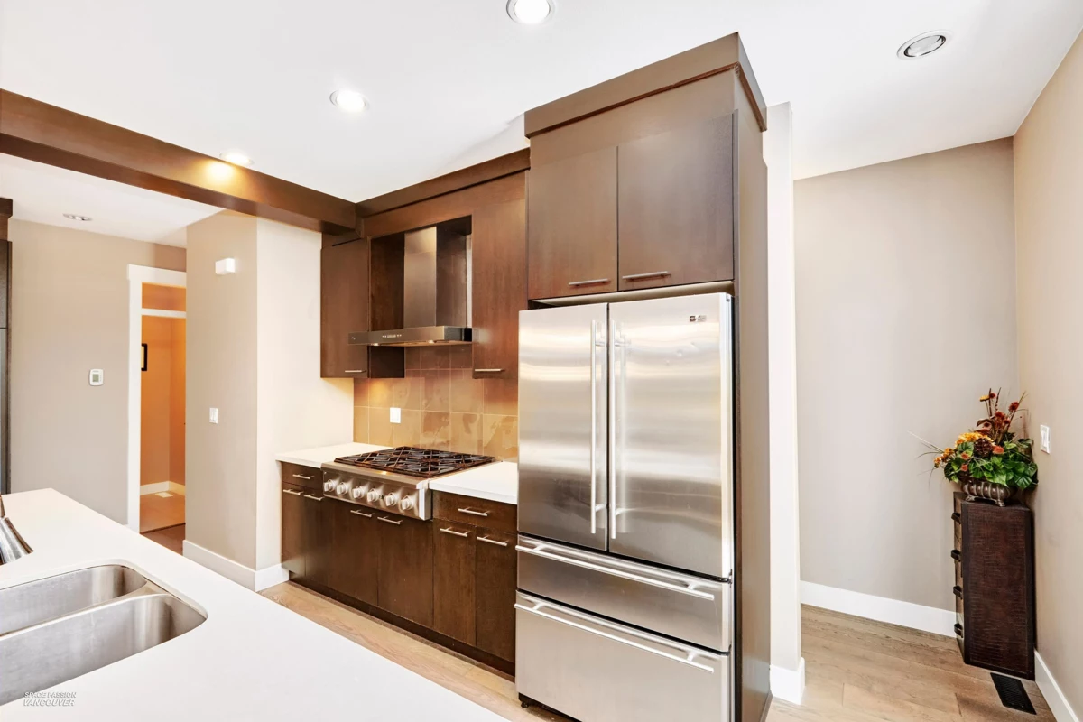 Welcome to BELCROFT – a duplex-style townhome that feels like a detached home in South Surrey's Grandview neighborhood. This 5 bed + Open Den, 4 bath home offers almost 2,400 sqft with a main floor primary bedroom, double garage. Features include vaulted ceilings, wide plank flooring, quartz counters, stainless steel appliances, built-in vacuum, and fenced west-facing yard backing onto green space. Ideally located in a quiet cul-de-sac, steps to Grandview Corners, Morgan Crossing, transit, and top schools including Southridge, Sunnyside Elementary, and Grandview Secondary. A perfect family home in a premium location! An ideal In-Law Suite on the entrance level. Could be a Mortgage helper or extra family members.