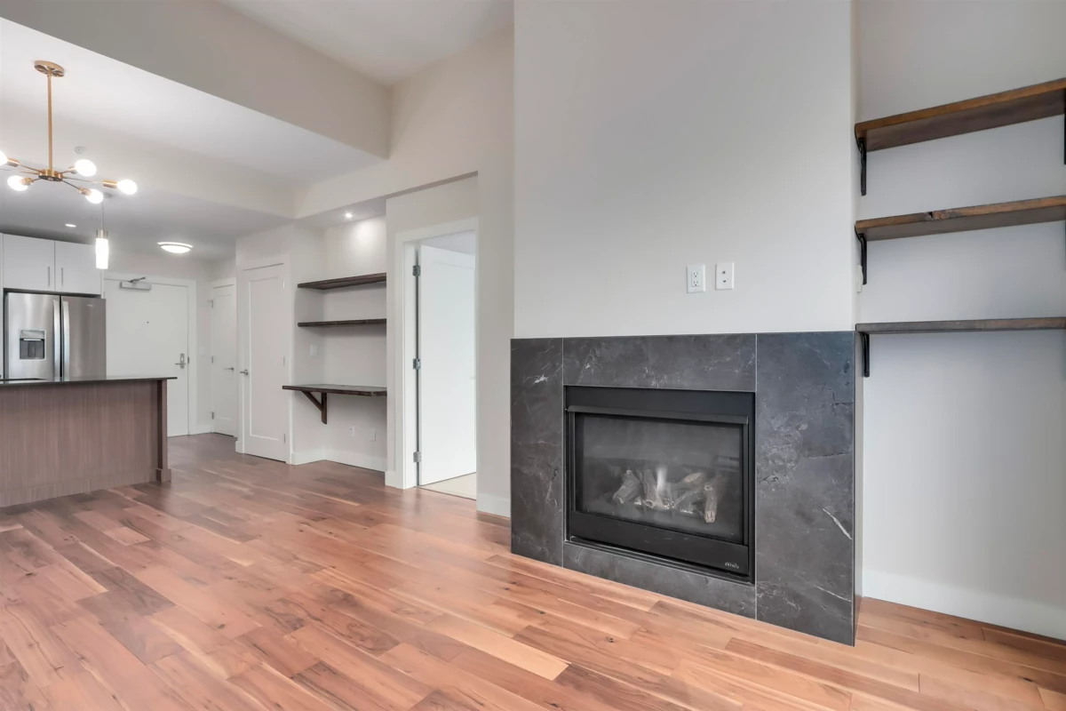 ONLY 1 Bed, 1 Bath, PENTHOUSE Unit at HARBOUR WALK (built in 2021). Located in the desirable location of Steveston South, enjoy all that the Steveston lifestyle has to offer, and avoid the hustle and bustle of the village. Sanctuary Cafe, Diplomat Bakery, London Landing Wharf, Nelson Pond Marina, London Farm and South Dyke Trail within steps of the building. This PENTHOUSE unit with SOUTH exposure features vaulted 11ft ceilings in the Living Room and Bedroom, oversize windows allow lots of natural light, gas fireplace, engineered hardwood flooring, heated flooring in bathroom, partially covered balcony with gas BBQ outlet, quartz countertops, gas stove, and much more! 1 parking stall (EV ready), 1 storage locker (on 4th floor). Gym, amenity room, community garden, and 2 pets allowed!