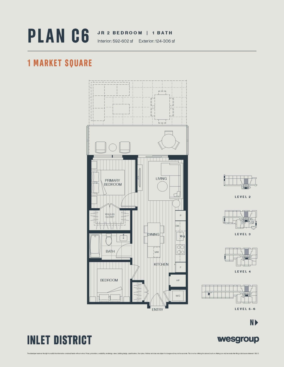 Welcome to 1 Market Square at Inlet District-just a 5-minute walk to the SkyTrain, located in the heart of Port Moody. This concrete west-facing Jr. 2-bedroom home features a spacious 124 sq ft. balcony, ideal for relaxing or entertaining. The primary bedroom includes a large walk-in closet, while the kitchen offers a functional island dining layout and a pantry for extra storage. Enjoy wonderful afternoon light and a smart, efficient floor plan designed for everyday comfort. With 27,000 sq ft of amenities, including a daycare, a vibrant central park, shops, and services, Inlet District offers a connected and balanced lifestyle. Visit the Presentation Centre at 2541 Clarke Street, open daily from 11am - 4pm.