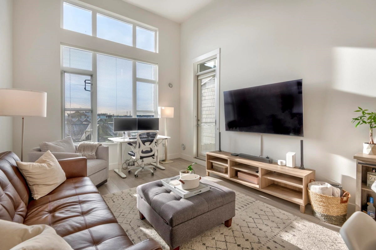 Fremont Emerald by Mosaic. Discover the pinnacle of modern living in this top-floor, 2-bedroom, 2-bathroom home, featuring vaulted ceilings and an abundance of natural light. Thoughtful upgrades include, built-in cabinetry in the dining room, dedicated shoe closet, closet organizers, and updated light fixtures and ceiling fans. Experience resort-style living with access to the Riverclub, offering an outdoor swimming pool, hot tub, exercise center, party room, billiards, basketball court, and a rock climbing wall. Every day feels like a vacation with these facilities at your door. Just a short stroll to the Poco Trail and Fremont Village, you'll enjoy the perfect blend of nature and urban convenience, with an array of shops and dining options nearby. This top-floor gem is waiting for you!