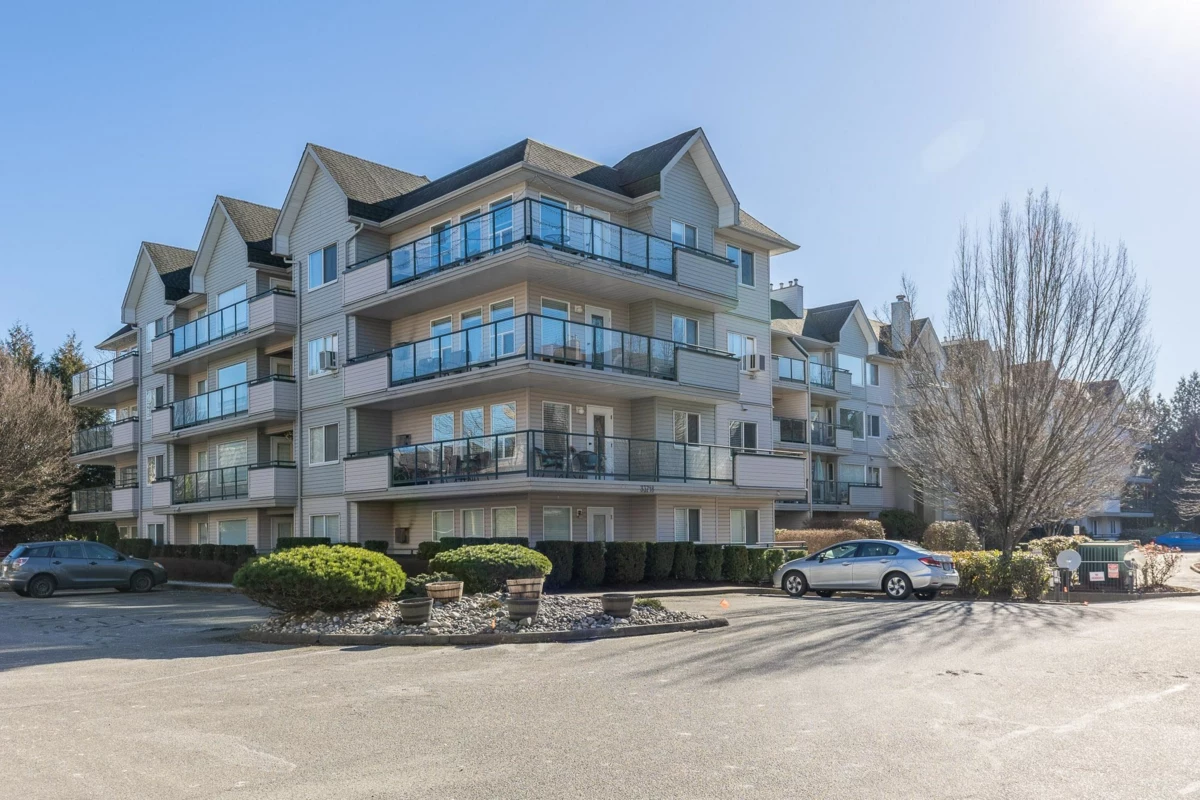 Easily the best unit at College Park, bar none! This top floor spacious corner unit has natural light, privacy, views, and square footage. 2 bedrooms, 2 full bathrooms, 2 underground parking stalls....and 2 dogs of any size if you want! The perfect layout for a condo that truly feels like a home, you will find yourself on your enormous patio as often as you can, taking in views of Mt. Baker and Mt. Cheam. Privacy is all yours with the treed surroundings, or pop back inside and enjoy it all through the many windows. Your oversized primary bedroom easily fits a king bed, your closet has ample space, the ensuite offers the privacy you desire. The building offers a small gym and guest suite. The location is a 10/10, walk to your university classes, restaurants and entertainment!