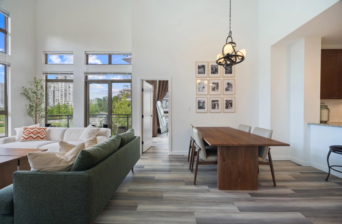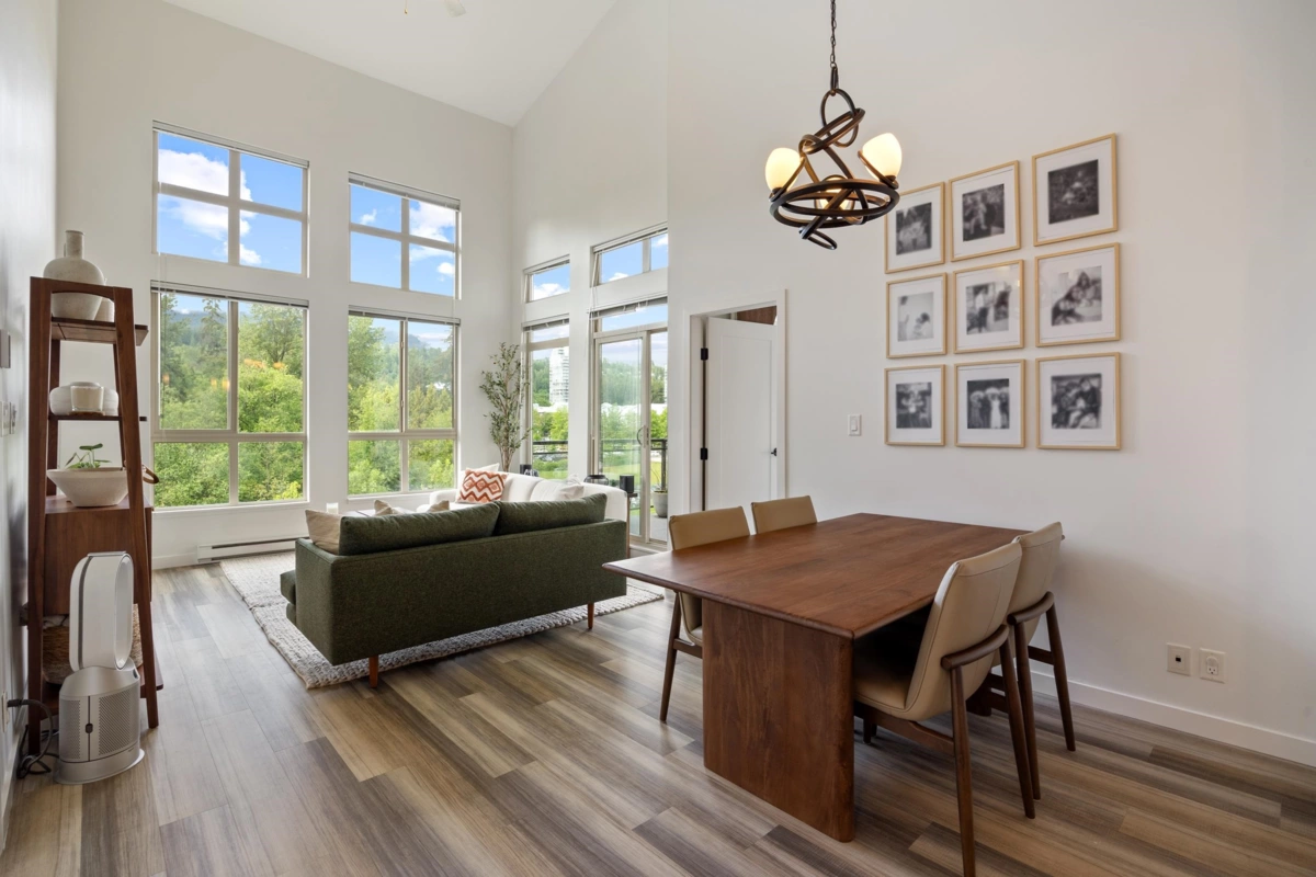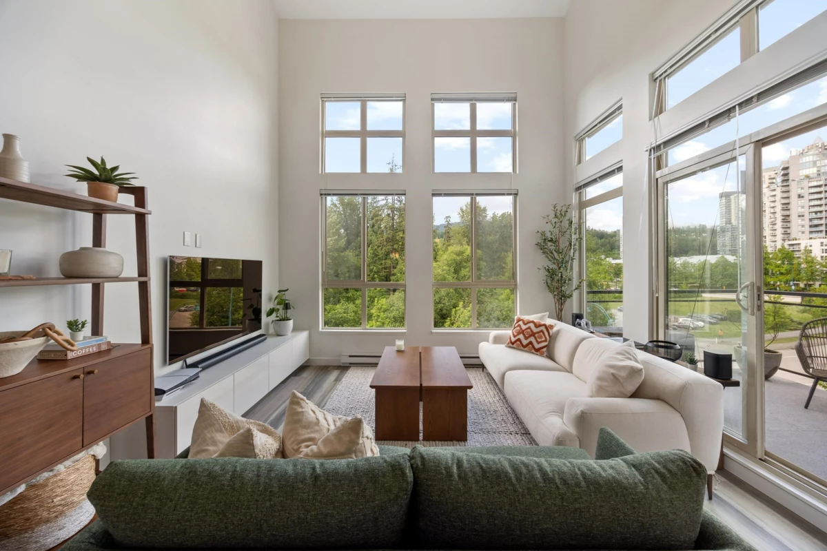 Average value of dwellings in this neighbourhood around 412 101 Morrissey Road, Port Moody, BC is $513966 and this is Above Average comparing to other areas in British Columbia