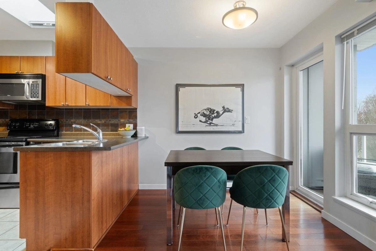 Sunny, bright, top floor SE facing corner unit with skylights & a perfect work-from-home space, quietly tucked away from the living area. If "lots of natural light, no one above me, a separate den area, walking distance to coffee, groceries and restaurants, and close to transit" are on your list of criteria, and in-suite laundry is a must-have, you have found your next home. Countless famous East Village foodie spots are within blocks, as is Starbucks, Shoppers Drug Mart, Bosley's (pets welcome- and so many dog walking spots close by), & more. The layout of this home is ideal. A comfortable sized living room flows into a dedicated dining space, and leaves room for a great sized kitchen with loads of storage. Complete w/ 1 secure parking & storage. Open Saturday Feb 7th 2-4pm.