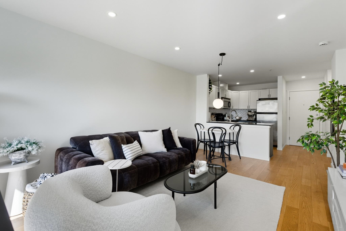 Ever dreamt of owning a home that looks like something out of a magazine? Well you've just found it ! Step into this beautifully designed Light + Bright South Facing 1 Bedroom unit, located on quiet Knox Street in Sapperton. The unit had been updated w/ sleek cabinetry in the kitchen & bathroom, detailed + unique tiling, & gorgeous light hardwood flooring throughout. The LR/DR is open to the kitchen, & features a built in office nook, perfect for WFH. The kitchen boasts two tone cabinets, SS appliances + quartz counters.The covered patio offers space for year-round entertaining. This home comes complete w/ insuite laundry, 1 pkg, & 1 storage. Steps from Royal Columbian Hospital, The Brewery District, grocery stores, restaurants + more. Schedule your private showing today