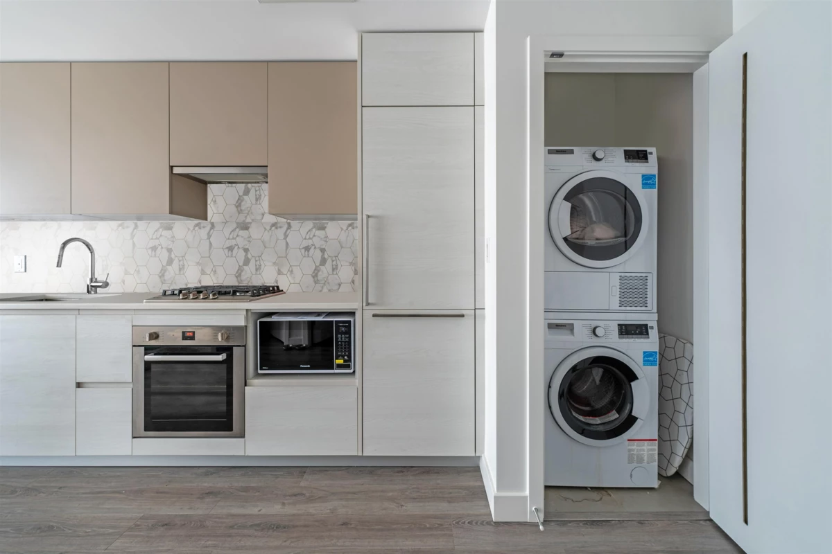 OPEN HOUSE Feb 15/16 from 1-3pm. EXCEPTIONAL VALUE for the most efficient 1 bedroom and den plan w/ 67sf outdoor balcony at Fraser Commons. An abundance of natural light due to south exposure w/ views of the city and river. Wide open plan that can accommodate sizeable furniture. Fully air-conditioned home featuring gas stove and fully integrated Bosch appliance package. Central location close to Superstore, Marine Gateway, Sunset Community Centre, YVR, shops/restaurants along Fraser and more. Amenities include exercise gym, rooftop terrace, party room and concierge. External storage included. NO PARKING.