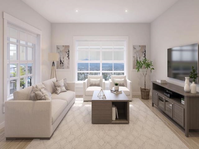 Ultra rare corner end-unit One Bed and Den with a big window that feels more like a 2 bedroom. Constructed by award-winning Falcon Homes, a luxurious new development condominium and located in the most desirable location in the trendy downtown area of Maple Ridge. Traditional design with heritage red brick finishing reminiscent of classic European style . The interiors showcase a harmonious blend of form and function, with spacious layouts and tasteful finishes. Every detail, from the flooring to the fixtures, reflects a dedication to quality and aesthetic excellence.YEAR-ROUND Comfort with Ductless Split AC/Heating System. Close to the WEST COAST EXPRESS, restaurants, city hall, all levels of schools, parks and shops.