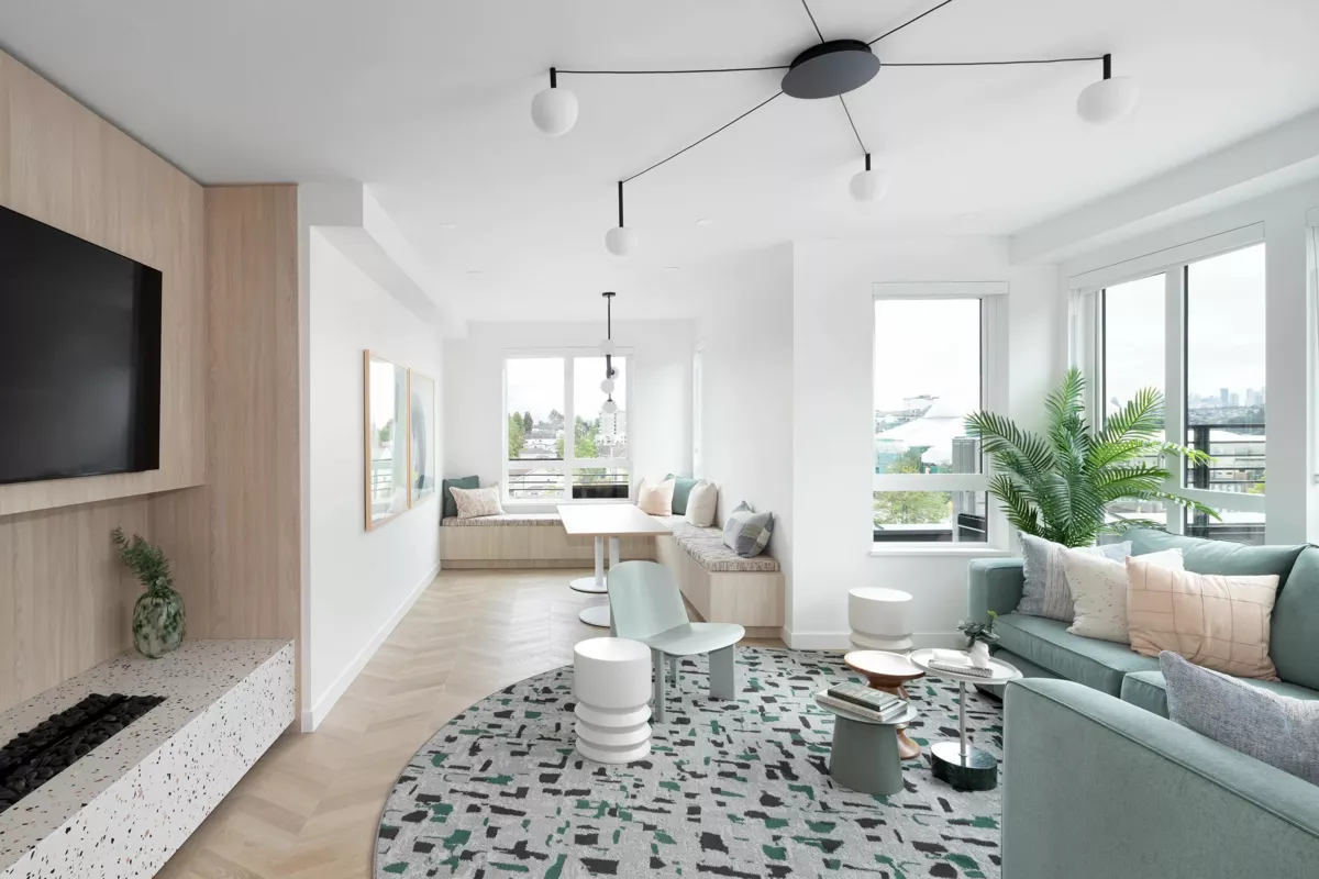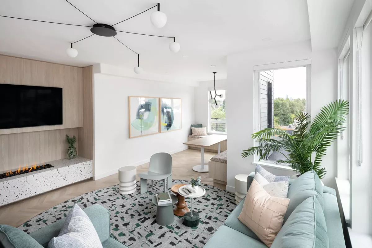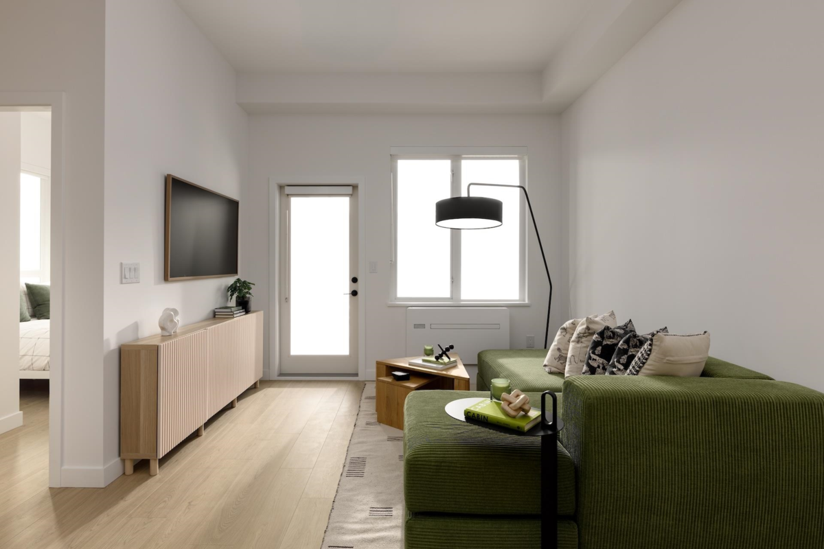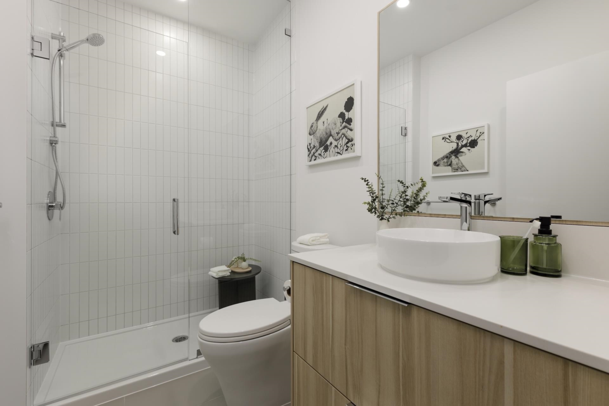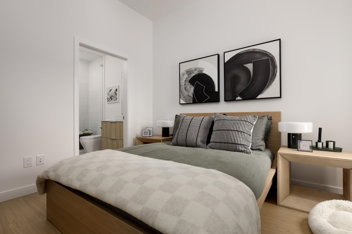 Move in Ready Grafia by Porte Homes is located on a quiet residential street just steps from Commercial Drive, transit and schools. Designed by award winning interior designer BYU and Integra Architecture. The development is a 6 story wood-frame building and amenities such as a social lounge, fitness center, dog wash station, rooftop terrace, garden plots and more. This 873 SF west facing two bedroom home features full size stainless steel appliances with gas stove. Laminate flooring through out the Homes. Presentation Gallery is now open from Saturday to Tuesday 12 to 5.