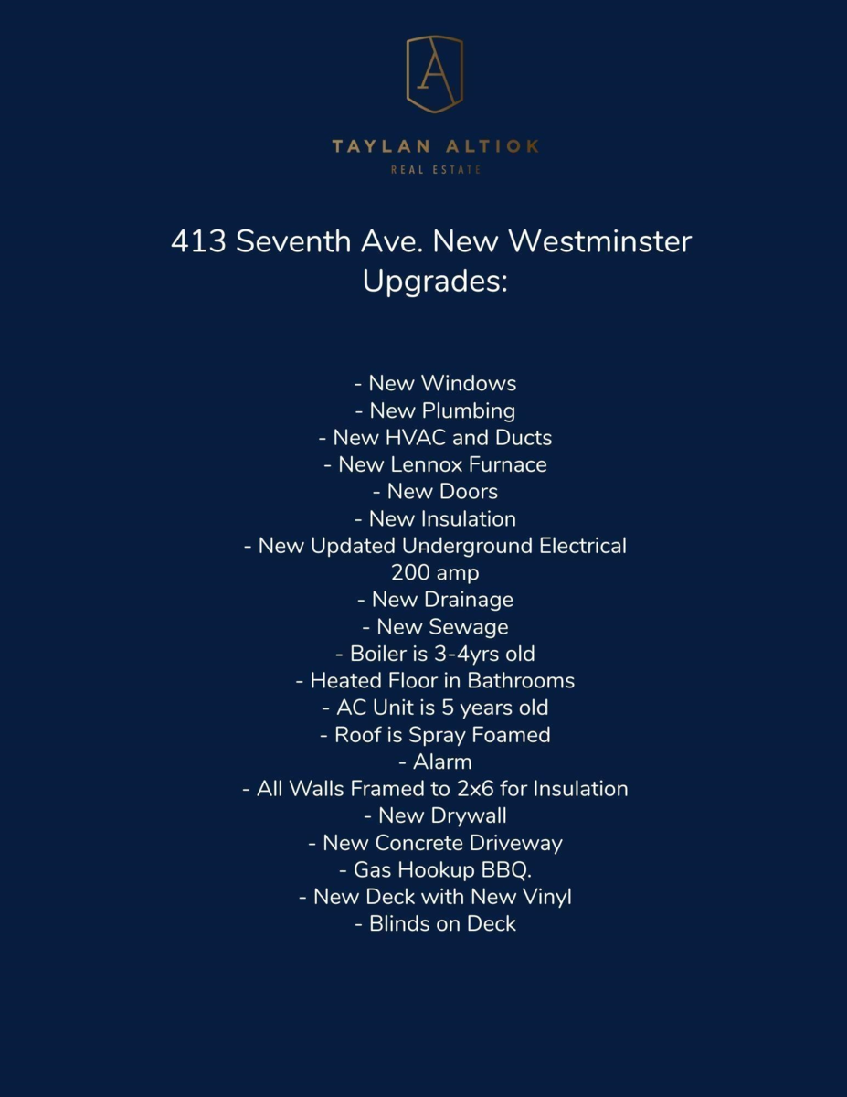 Discover 413 Seventh Avenue, a fully renovated gem in vibrant New Westminster! This exquisite home blends modern elegance with classic charm, featuring sleek finishes and abundant natural light. A newly poured concrete driveway enhances its stylish, functional appeal. Nestled in the backyard, a brand-new 1,012 sq/ft laneway home offers contemporary design, ideal for guests, extended family, or rental income. With an impressive Walk Score of 97, enjoy steps-away access to trendy cafes, local shops, parks, and transit. This property delivers unmatched versatility, and convenience, making it a rare opportunity. Embrace modern living with features that include A/C, new windows, new deck with new vinyl, new plumbing, heated bathroom floors, new HVAC and ducts, and many more! Call Today!