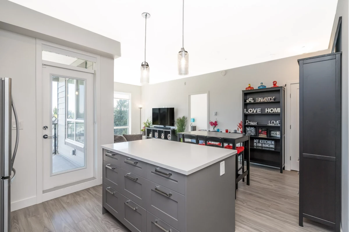 Incredible value in a great neighbourhood of Clayton! Spacious 3 bedroom 2 full bathroom, 975sf CORNER unit! Bright & open floorplan, windows on 2 sides. Southeast facing home. Primary bedroom w/ big walk in closet and 4 piece ensuite - 2 basins and huge shower. 2 more bedrooms and another full bathroom. Laundry. Kitchen w/ lots of cabinets and counterspace plus a large island overlooking the dining room and living rm w/ a door to your private covered deck. Close to shopping, transit, restaurants, future skytrain. Great schools and new community center. Amenities include club house, guest suite, billiards, gym. 2 parking spots - 34 & 35. Call today!