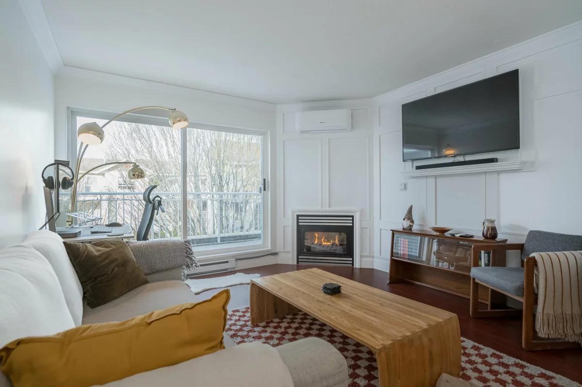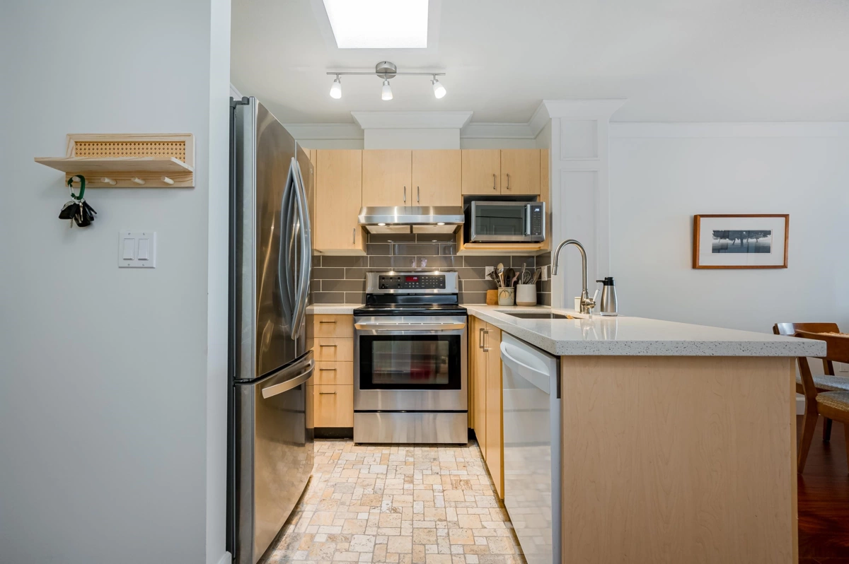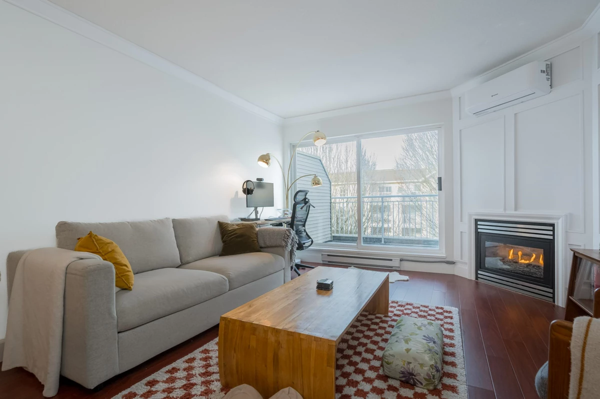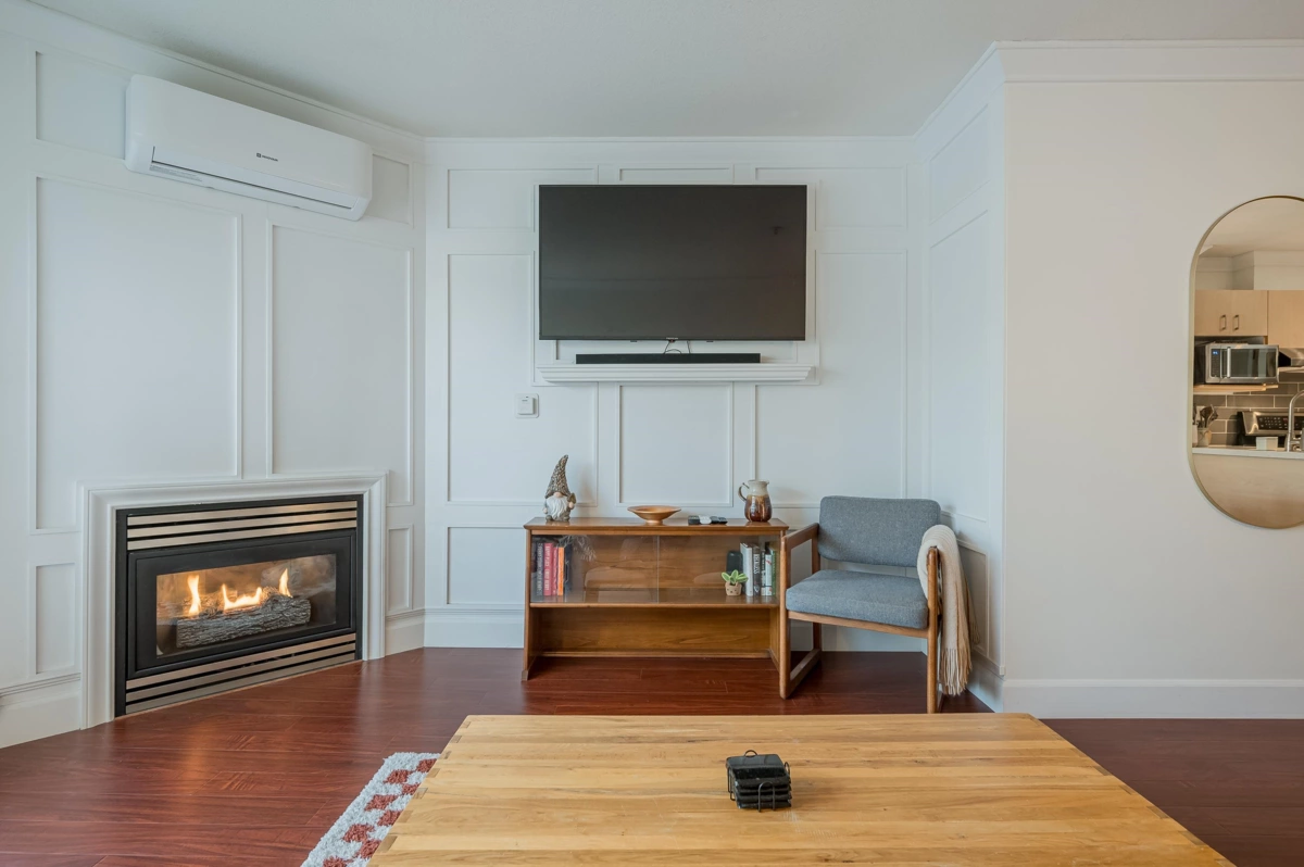 Top Floor 1 Bedroom Penthouse in a Perfect location! This 1 bedroom in the popular 'Rosewood' building is updated and has a new heat pump and A/C! Great floor plan, this unit has updated appliances and quartz counters in the kitchen and bathroom, big Deck faces north and gives nice privacy in bloom, living area is a good shape and has gas fireplace, in suite laundry with room for storage. 1 parking and 1 locker down as well as bike room. Just across the street from superstore, Willowbrook mall and all levels of shopping including the new skytrain. Super convenient spot!