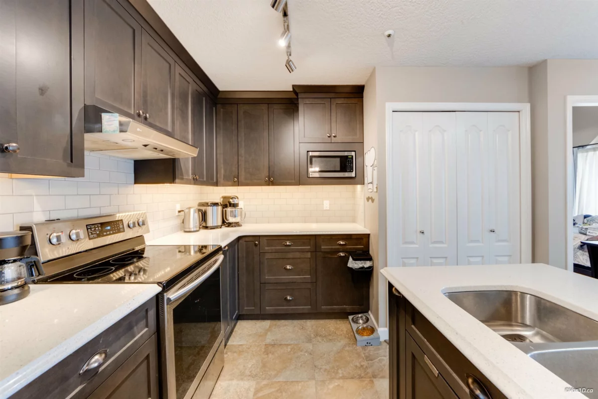 Top floor at “The Burlington” where convenience meets lifestyle.You’re not just investing in a home you’re investing in effortless living with transit, amenities, and community all at your doorstep.With three SkyTrain stations within a short 10-minute walk, commuting is seamless and stress-free,Perfect for families.This home is surrounded by excellent schools, all within a 15-minute radius:Glen Elementary,Maple Creek Middle School, Pinetree Secondary.We invite you to visit both day and night to truly appreciate this exceptional location and to experience the breathtaking Coquitlam city lights for yourself. Kitchen upgraded with NEW Cabinets & Countertop. Bathroom New Countertop, Cabinets & Lighting. Textured Ceiling, Balcony access from every room.Same owner last 23 years, Welcome Home!