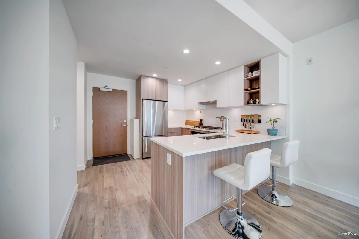 Welcome to Kira, an elegant boutique style residence located in a quiet, established neighbourhood just a 5-minute walk to SkyTrain and close to parks, top-rated schools, shopping, and everyday amenities. This 2 bedroom, 1 bath home features a thoughtfully designed floor plan that maximizes space, functionality, and privacy ideal for first time buyers, professionals, or investors. The refined kitchen showcases high end stainless steel appliances, a gas cooktop, and sleek quartz countertops, blending style with performance. Quality finishes throughout to enhance the modern aesthetic. Includes 1 parking stall and 2 storage lockers, offering exceptional convenience and added value in a boutique setting. Open House Saturday 2:00 PM - 4:00 PM & Sunday 12:00 PM - 2:00 PM