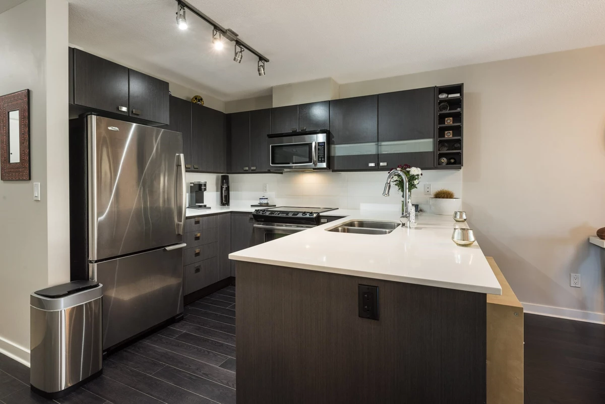 Discover this top-floor 2-bedroom, 2-bathroom condo in a prime, well-maintained building. The open-concept layout bathes the space in natural light. The kitchen boasts quartz countertops, stainless steel appliances, and a breakfast bar. The primary bedroom features a walk-in closet and a 4-piece ensuite, while the bedrooms are thoughtfully positioned on opposite sides for added privacy. Enjoy a large covered balcony, in-suite laundry, and a storage locker. Pet-friendly building with EV chargers and secure underground parking. Quick access to Highways 1, 10, Fraser Highway, and the future SkyTrain. Steps from transit, all levels of schools, Canlan Ice Sports, parks, and shopping. Ideal for families or investors seeking a prime opportunity.