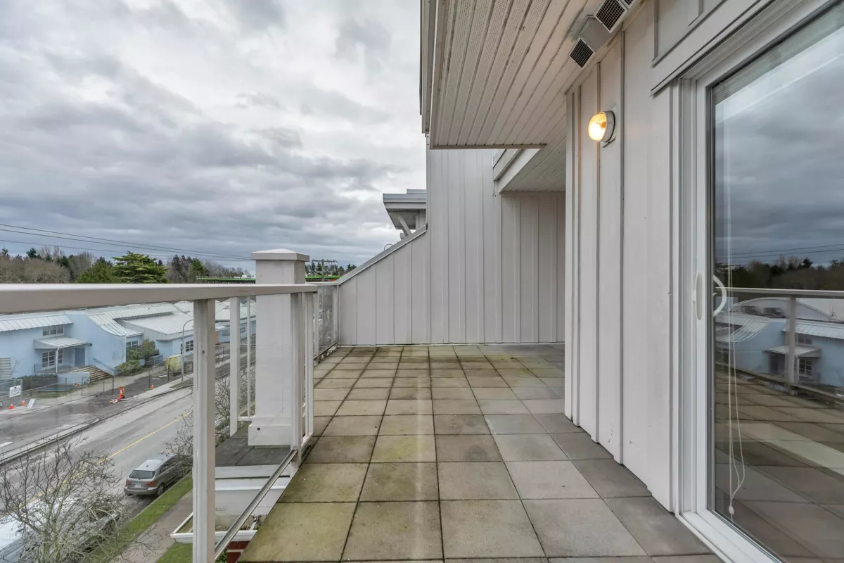 Top floor 1 Bdrm + den + 1.5 bath corner unit in "The Village". Park and mountain views from oversize deck plus smaller bonus deck. Generous 890 sq. ft. of living space with 14' ceilings. Large insuite storage room. Amenities include fitness room, party room, guest suite and more. Super location. Walk to transit, shops, restaurants and more.