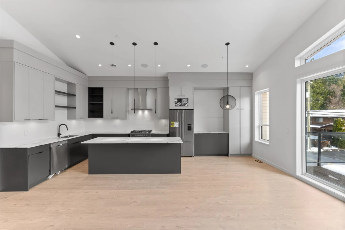 Introducing this modern ½ duplex in sunny Brackendale. The main home features 6 spacious bedrooms and 4 bathrooms, a bright open-concept living area with vaulted ceilings, chef’s kitchen, oversized balconies, and floor-to-ceiling windows. Detached accessory building welcomes endless potential. Fully fenced backyard, and ample parking. Just steps to shops, restaurants, and schools - this home truly has it all!