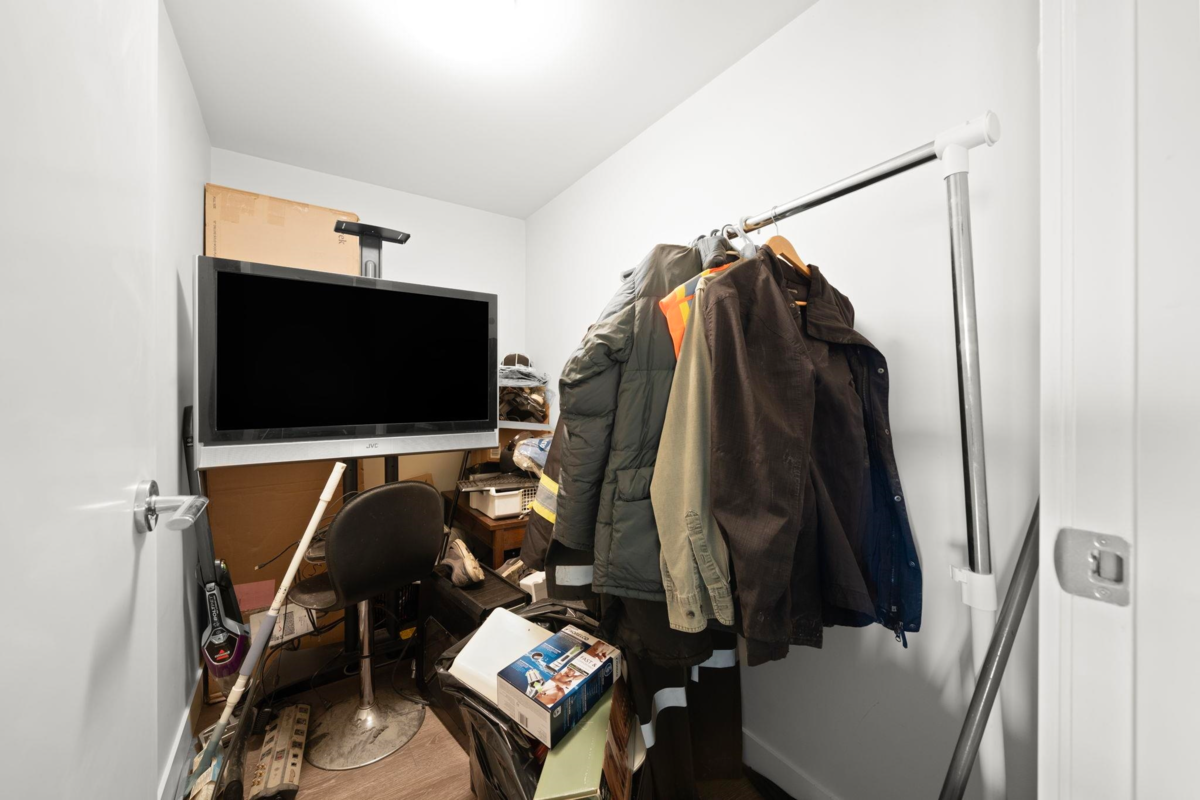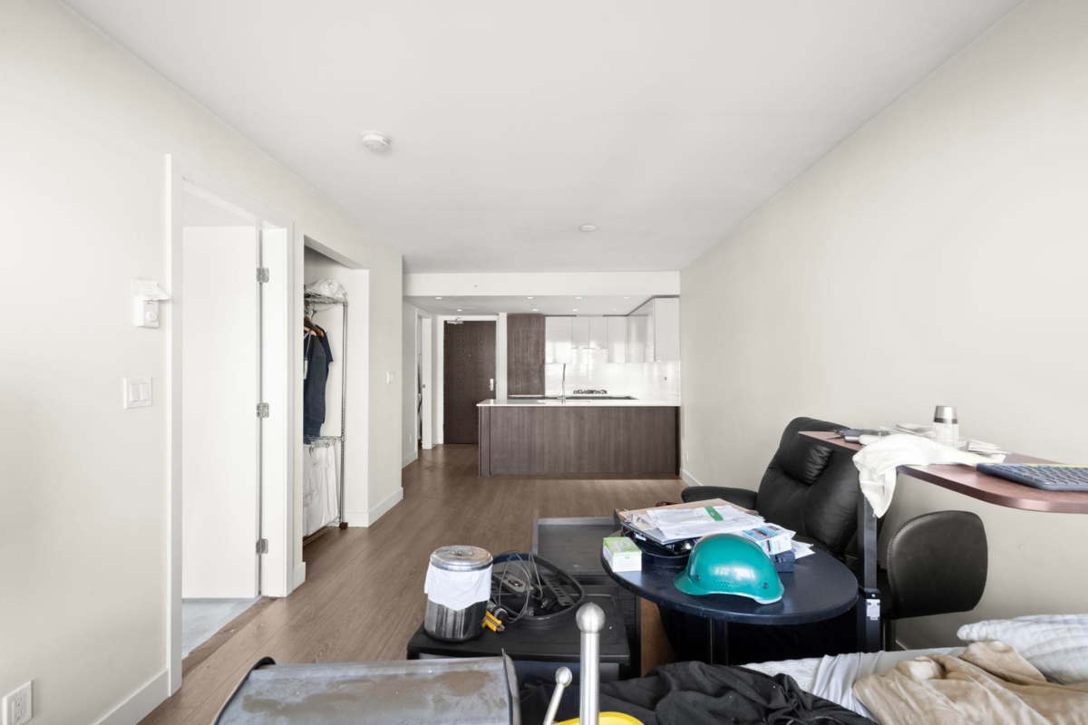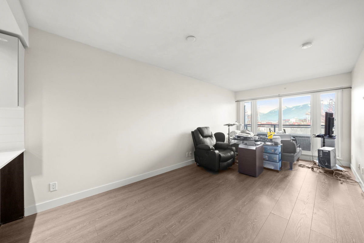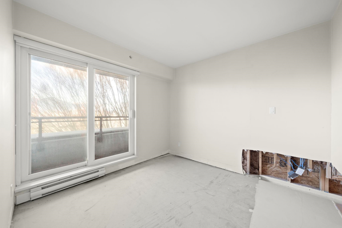 This top-floor, 1 bdrm + den at Boheme is perfectly placed where Commercial Dr & Hastings-Sunrise meet. An open layout w/ modern kitchen including integrated appliances, gas cooktop, quartz countertop, and a flexible den ideal for a home office or extra storage. Boheme residents enjoy access to a well-equipped fitness centre & residents’ lounge. Immerse yourself in this lively neighbourhood - steps from Earnest Ice Cream, Yolks, No Frills, & transit. 1 underground parking & 1 locker included. Pets and rental friendly. Vacant. Bring your design ideas...SOLD AS IS, WHERE IS - some reno work will need to be completed by Buyer. Photos have been touched up & virtually staged to illustrate potential. Offers to be submitted Jan 15th. OPEN HOUSE: SAT, JAN 10, 3-5 PM & SUN, JAN 11, 2-4 PM.