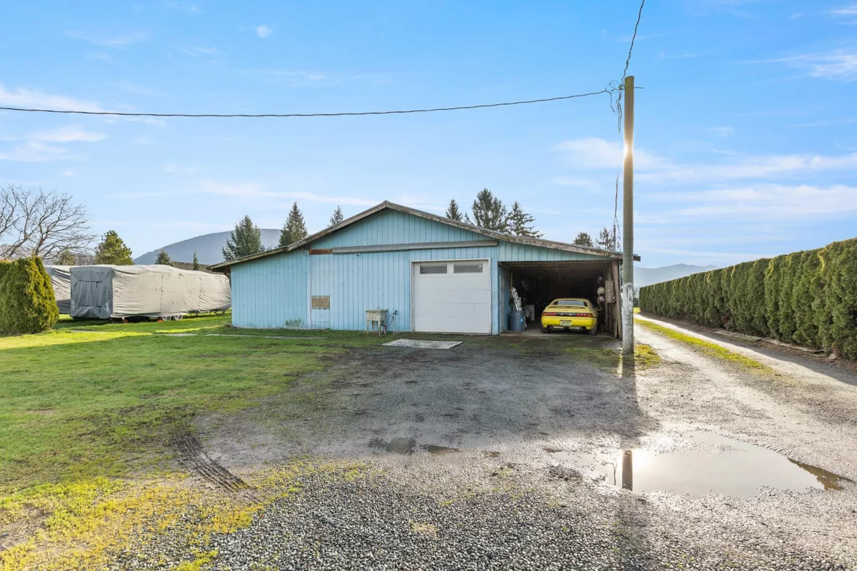 One of the best priced acreages in Greendale! Well maintained mid century style home, fully livable situated on 2.5 beautiful acres. Surrounded by trees and backed by a small creek for added privacy. All windows are updated, metal roof, forced air heating, plus a wood burning fireplace. 2700+ sqft shop/barn/carport provides tons of space for your hobby farm or a home business. Small 390+ sqft, 1 bed, 1bath modular guest cottage can be included as well. 5 minutes to Yarrow, 15 minutes to both Chilliwack and Abbotsford provides a quick commute for all your needs. Don’t miss out!