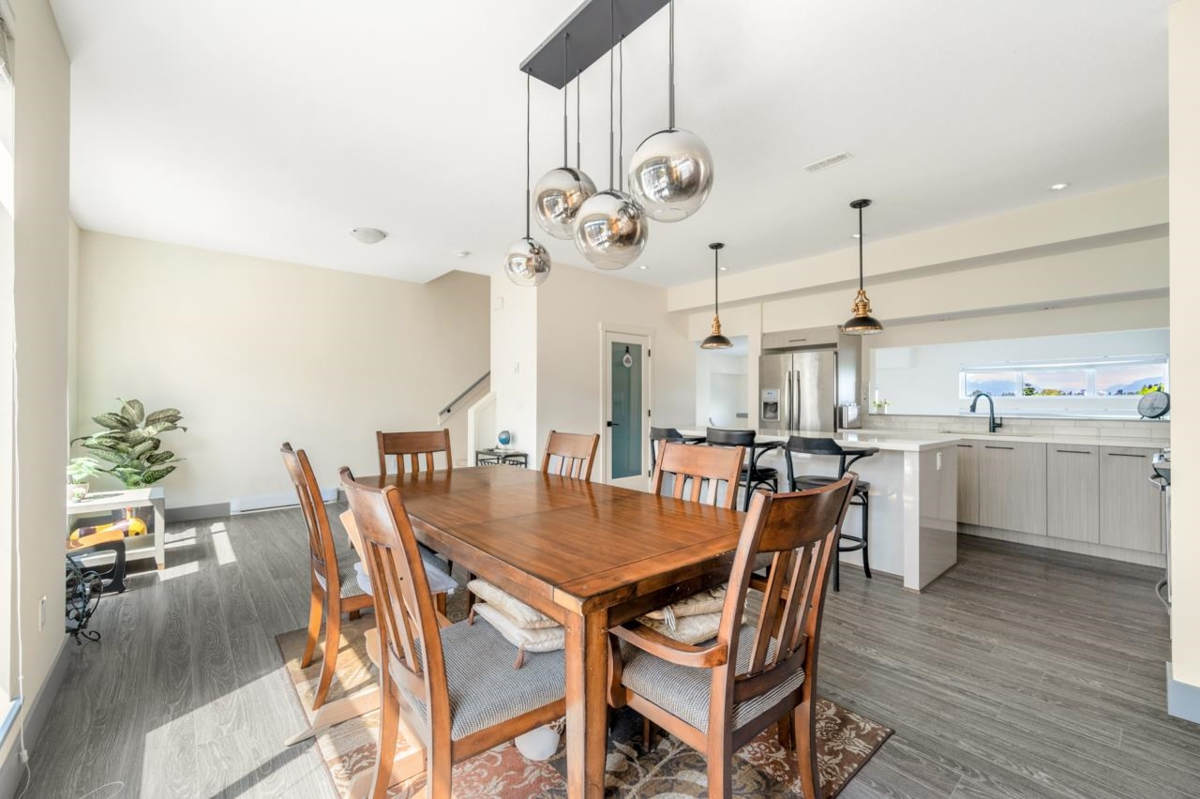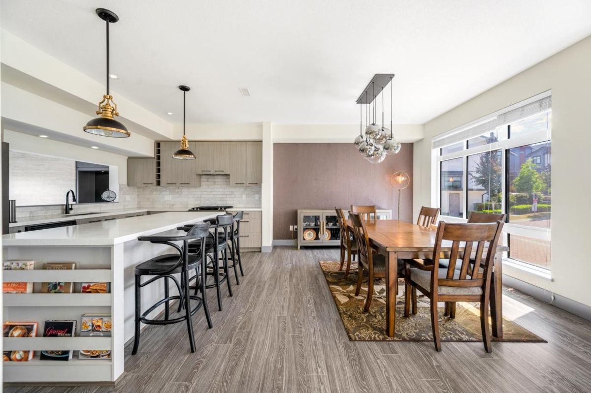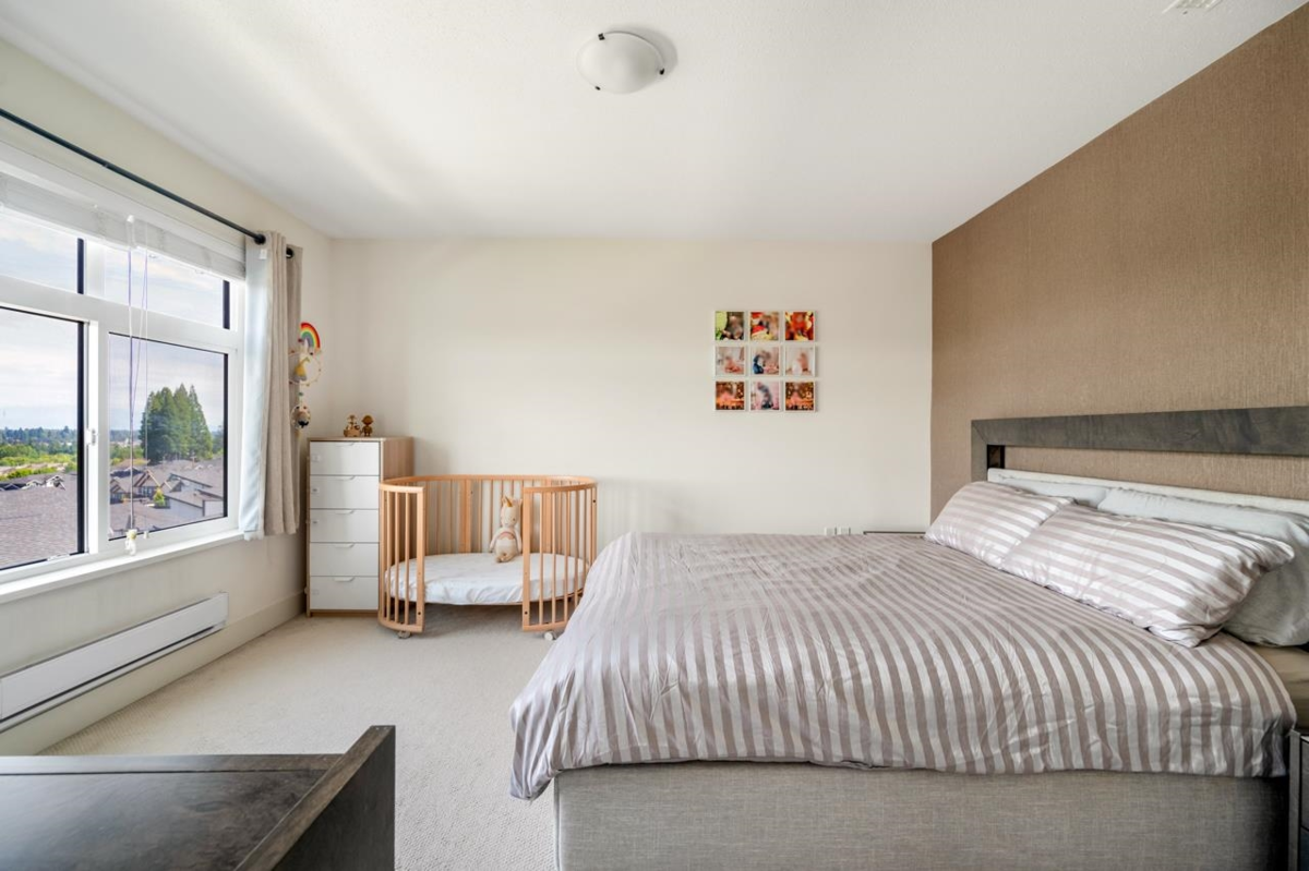 Welcome to Summit by Hayer at Sullivan Station, Surrey! This beautiful townhouse offers: Stunning Rooftop Patio: Enjoy an oversized rooftop patio with unobstructed mountain views | Double Car Garage: Convenient and secure parking | Open-Concept Main Floor: A unique, spacious layout with high ceilings, perfect for entertaining and family life | Gourmet Kitchen: A chef-inspired kitchen featuring stainless steel appliances, quartz counter top, a pantry, wine fridge, and a large kitchen island |Comfort & Style: Equipped with air conditioning and meticulously maintained, this home is spotlessly clean and ready for you to move in. | 3 outdoor space: balcony, back yard, roof top.