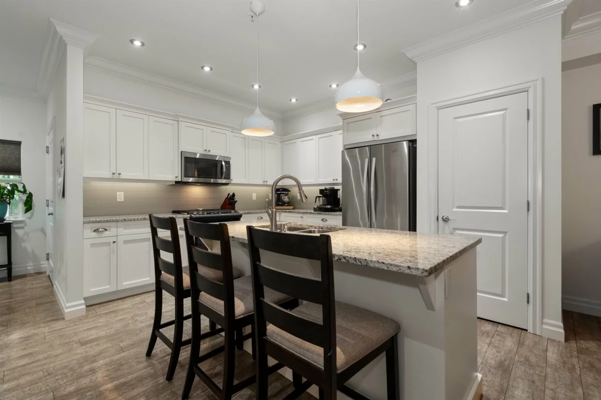 Welcome to this 5-bedroom, 3.5-bathroom townhome offering space, comfort, and an unbeatable location. Nestled against the trees and just steps from the Rotary Trail, this home is perfect for growing families or active professionals.The open-concept great room is ideal for entertaining, with easy access to the private, fenced backyard. Upstairs features three bedrooms, including a private primary suite with forest views! The fully finished basement adds two more bedrooms, bathroom, and a flex space—ideal for a home office, gym or a space for guests. Step outside to enjoy low-maintenance living with professionally installed artificial turf. Located within walking distance to all levels of schools, parks, and amenities, this home offers the perfect blend of lifestyle and location.