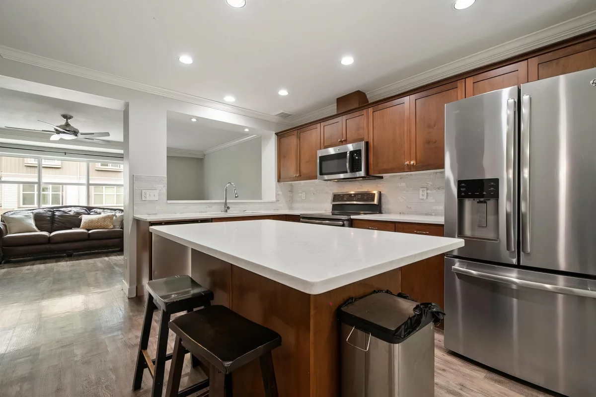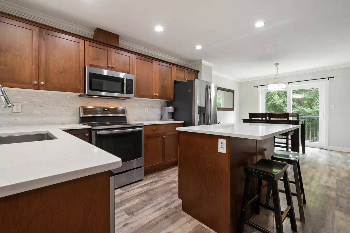 The one you've been waiting for! Discover this stunning end-unit townhome in Townsend Terrace, perfectly positioned across from Townsend Park! Bright and inviting, this home has been beautifully updated with flooring, paint, appliances, light fixtures, quartz countertops and backsplash, all enhanced by central A/C for year-round comfort. The main floor features a gourmet kitchen, spacious living, a versatile den & more. Upstairs, retreat to the large primary bedroom with an ensuite, as well as 2 secondary bedrooms, laundry & more. Downstairs enjoy a spacious rec room, ideal for family living. Enjoy the convenience of a double garage and backing onto common green space! With shopping, schools, and recreation just minutes away, this is the perfect blend of style, comfort, and location.