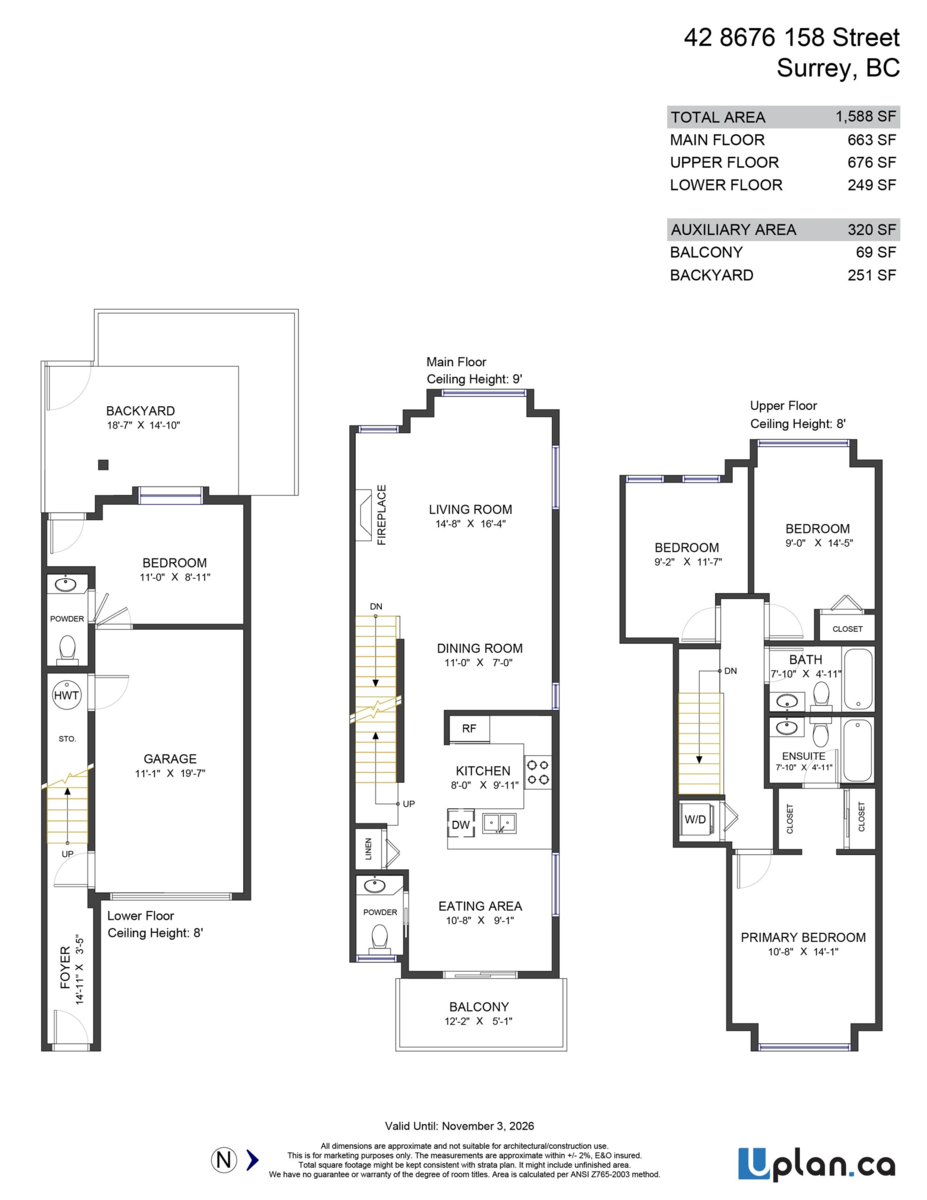 | Main Level | Living Room | 14'9 x 14'9 ft |