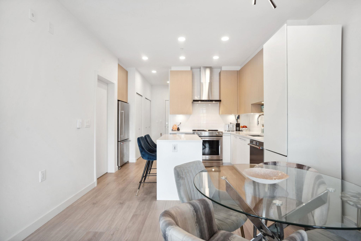 BEST $/sqft in the development! Don’t miss this opportunity to own a bright and spacious 2 bed, 2 bath home at Cedar Creek by Ledingham McAllister, perfectly situated in Burnaby’s vibrant Edmonds community. This nearly new home offers 9’ ceilings, a modern open-concept layout, full-size stainless steel appliances, and a generous living area that opens to a large, quiet-side balcony with peekaboo mountain views. Just minutes away from Edmonds SkyTrain, Highgate Village, parks, schools, and the future Southgate City master-planned community. Exceptional amenities include a fully equipped gym, guest suite, playground, & more. 1 parking & 1 locker. EV available. Pet & rental friendly. Schedule your private showing today!