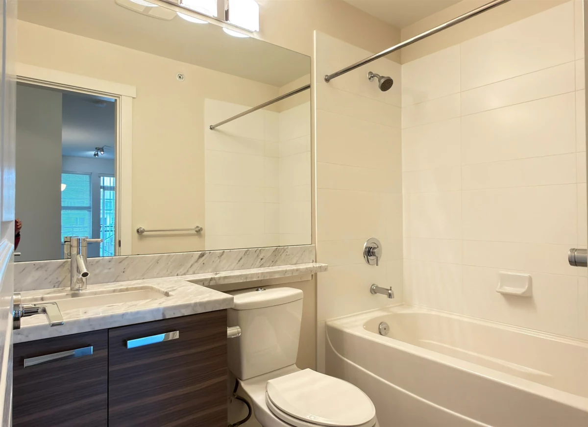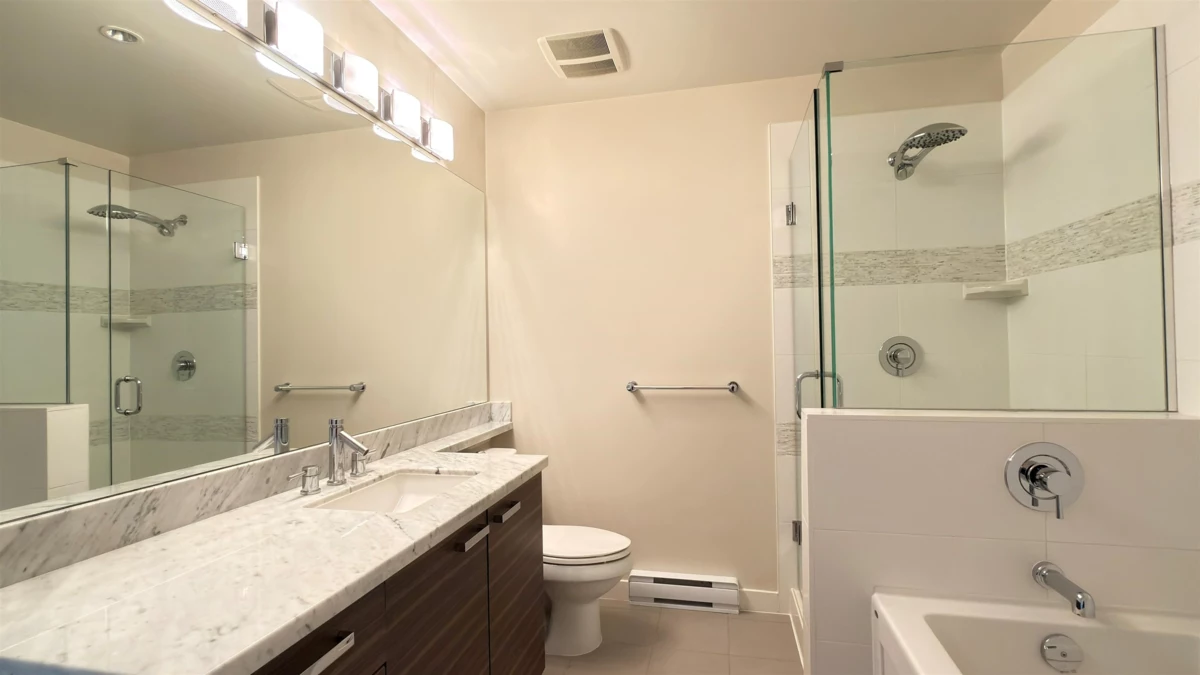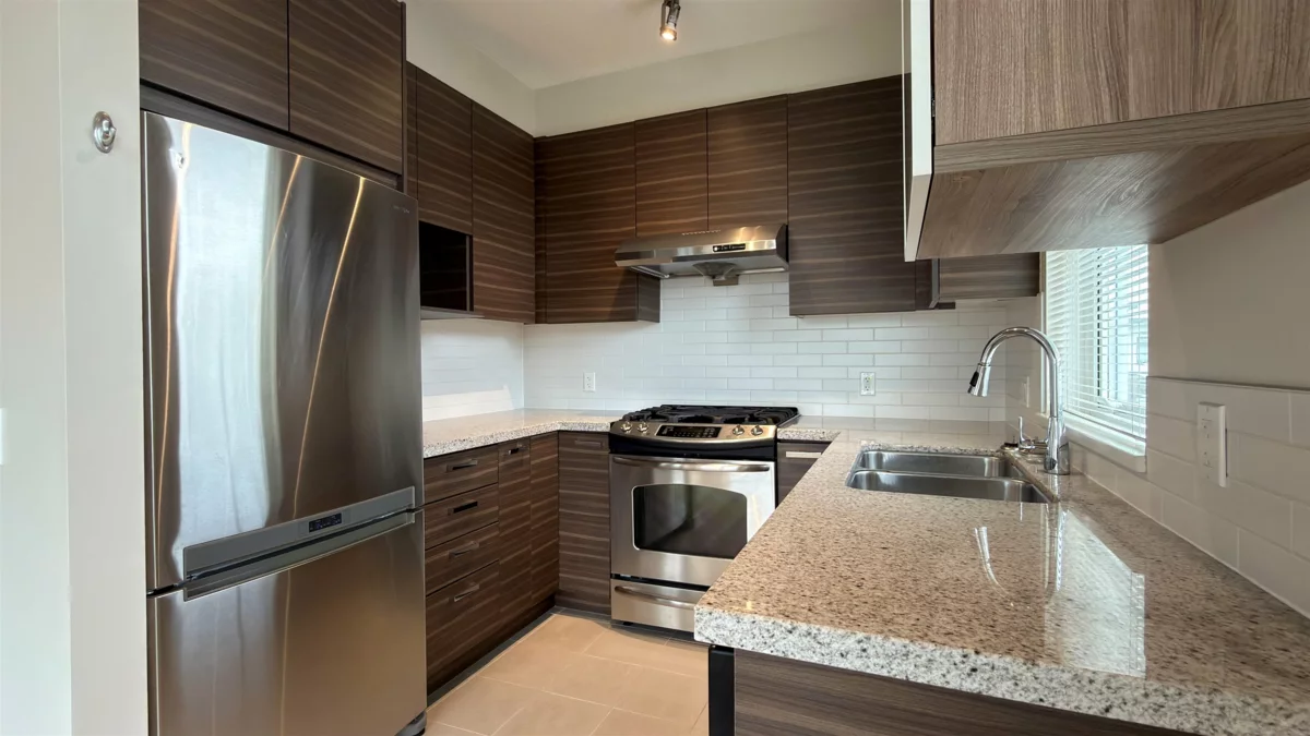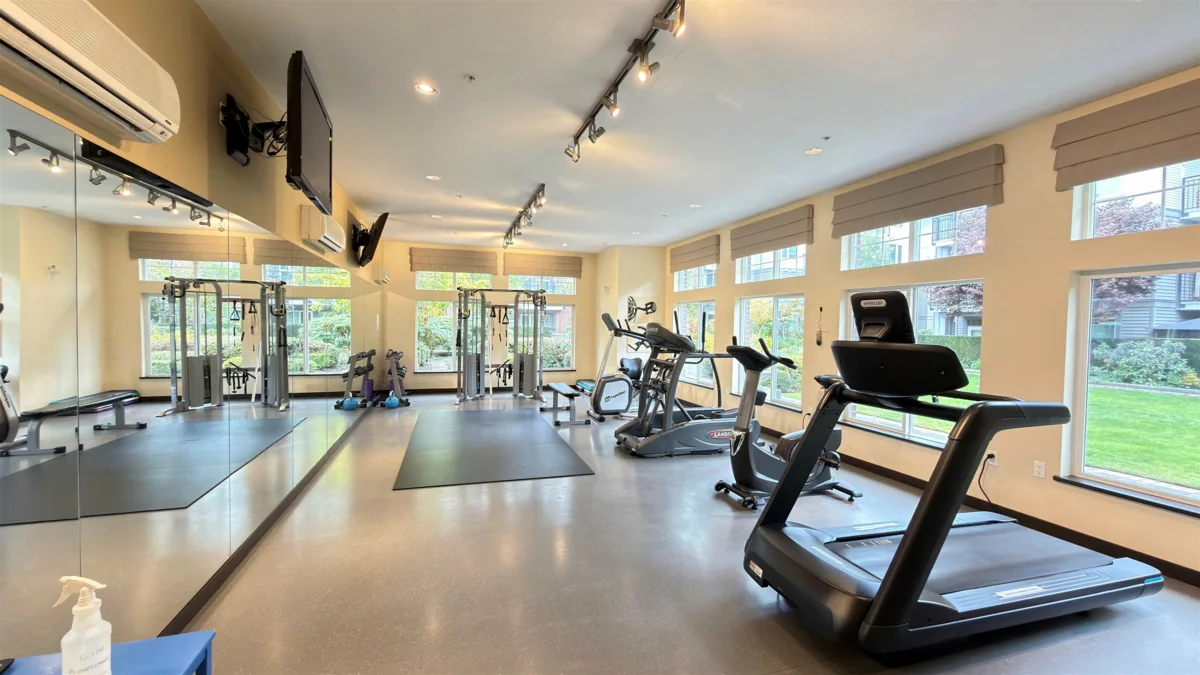 Corner unit with abundant windows and a balcony -Luxury living at Mayfair Place by Polygon. Prime Richmond locatior steps to premier shopping, diverse dining option, Walmart, and SkyTrain. This home features an elegant layout with 2 bedrooms on opposite sides for privacy, a cozy breakfast nook, a spacious walk-in closet in the primary room, and geothermal heating & cooling for year-round comfort. Enjoy a 10,000 sq ft clubhouse with resort-style amenities-pool, gym, theatre, guest suite, and lounge. Quiet inside courtyard view. Move-in ready. Includes one parking. Open House Sun 1/25 3pm-4pm