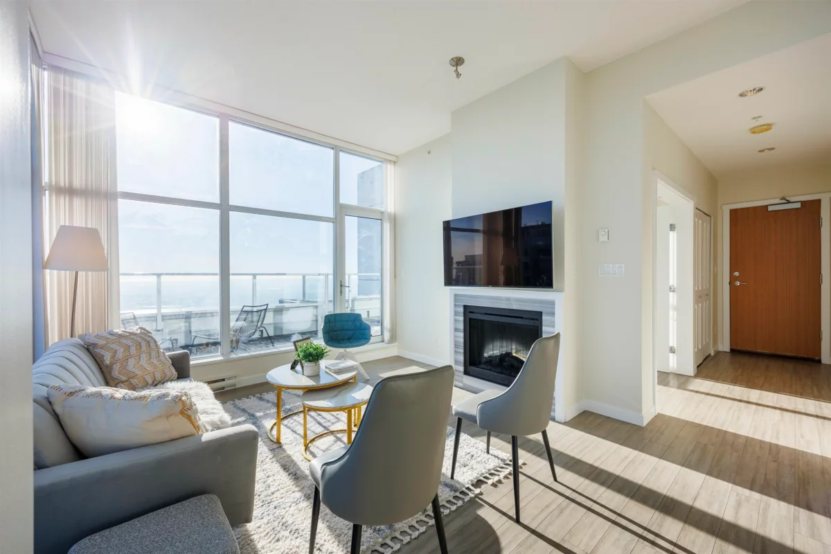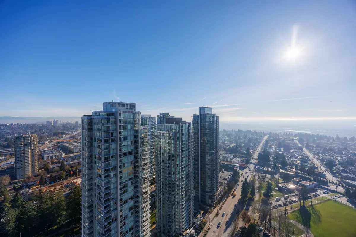 Welcome to this prestigious Penthouse at Chancellor by Polygon in the heart of Metrotown. This bright 2-bedroom + den home offers a functional layout with panoramic views of the mountains, Deer Lake, city skyline, and Fraser River. The open-concept kitchen features high-end stainless steel appliances, perfect for daily living and entertaining. Highlights include 10’ ceilings, quality flooring, electric fireplace, AC, and spacious balconies. Includes an oversized storage locker and a rare 3 side-by-side P1 parking stalls. Freshly painted and move-in ready. Steps to Metrotown Shopping Centre, SkyTrain, Bonsor Recreation Complex, parks, dining, clinics, and schools. Ideal for luxury living or premium investment. Open House 2-4PM Jan 24th(Saturday).