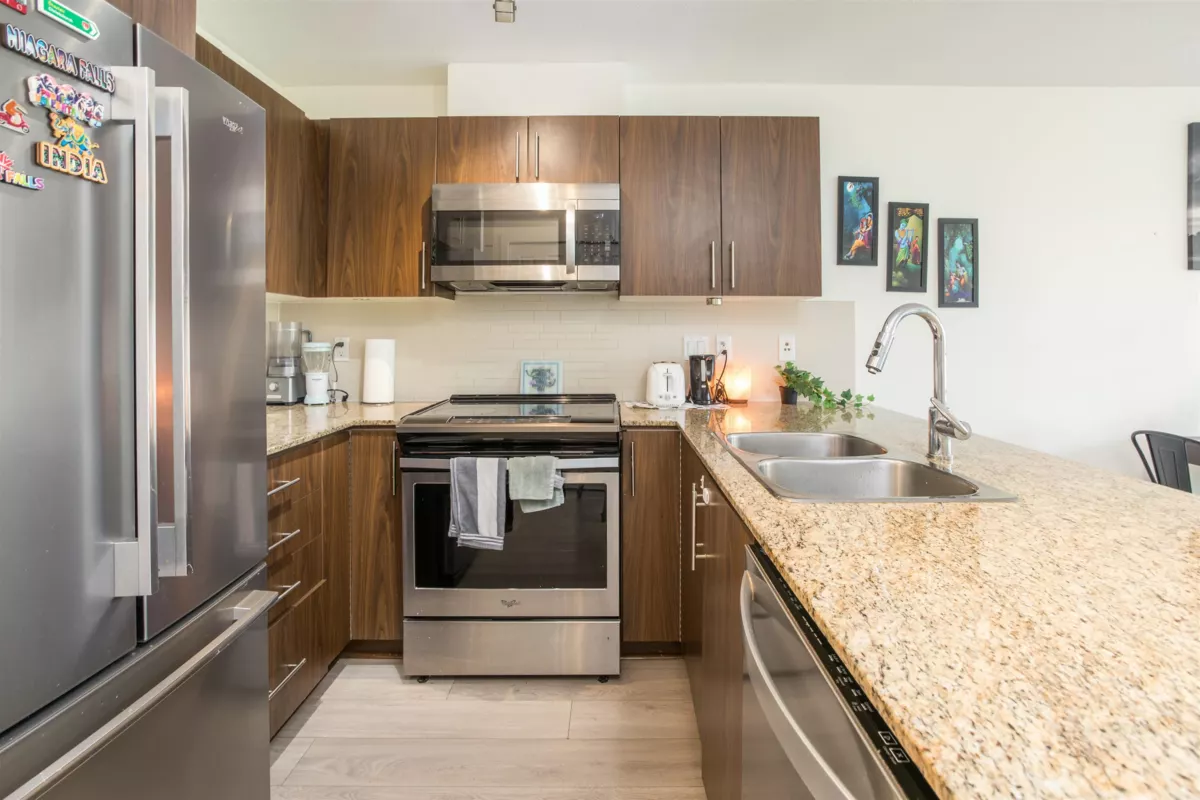 Welcome to this bright & spacious TOP-FLOOR home, centrally located in the heart of Langley’s highly sought-after Walnut Grove community. Boasting an open-concept layout, the kitchen is elegantly appointed w/ granite countertops, stainless steel appliances, & a convenient breakfast bar. The Den offers an excellent option for a home office or additional flex space. Step onto your private patio to enjoy stunning mountain views, a perfect setting for relaxation. Surrounded by top-rated schools, beautiful parks, shopping, dining, & entertainment, this home offers quick access to Highway 1 & public transit & is within walking distance to everything! excellent opportunity for first-time buyers, downsizers, or investors. Comes with 1 Parking and 1 Storage locker close to the elevators.