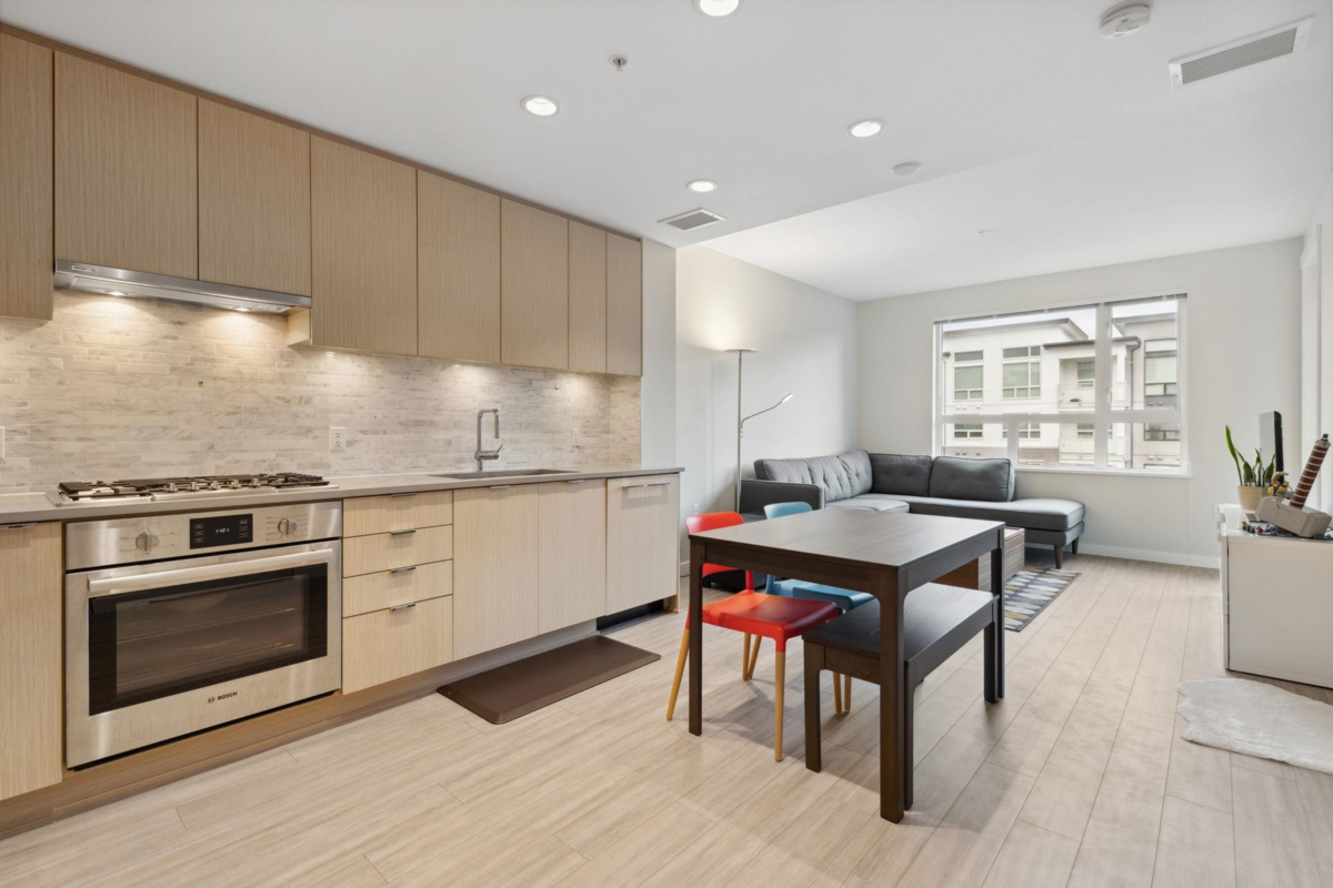 Introducing the prestigious Berkeley House by Polygon—a sophisticated and functional one-bedroom+ den/Flex home with a serene courtyard view, features 9' ceilings, premium Bosch appliances, central air conditioning for ultimate comfort during warm summer days. The open-concept kitchen seamlessly transitions into a bright and spacious living area. Included one parking space and one storage locker for added convenience. Enjoy over 5,000 square feet of resort-style amenities, including a lounge, billiards room, fitness and yoga studio, music room, collaborative workspaces, and an outdoor playground picnic area. Perfectly located within walking distance of Walmart, Lansdowne Mall, restaurants, parks, banks, and public transit, Welcome to your new home Open Jan 18 Sat / 19 Sun , 2-4pm