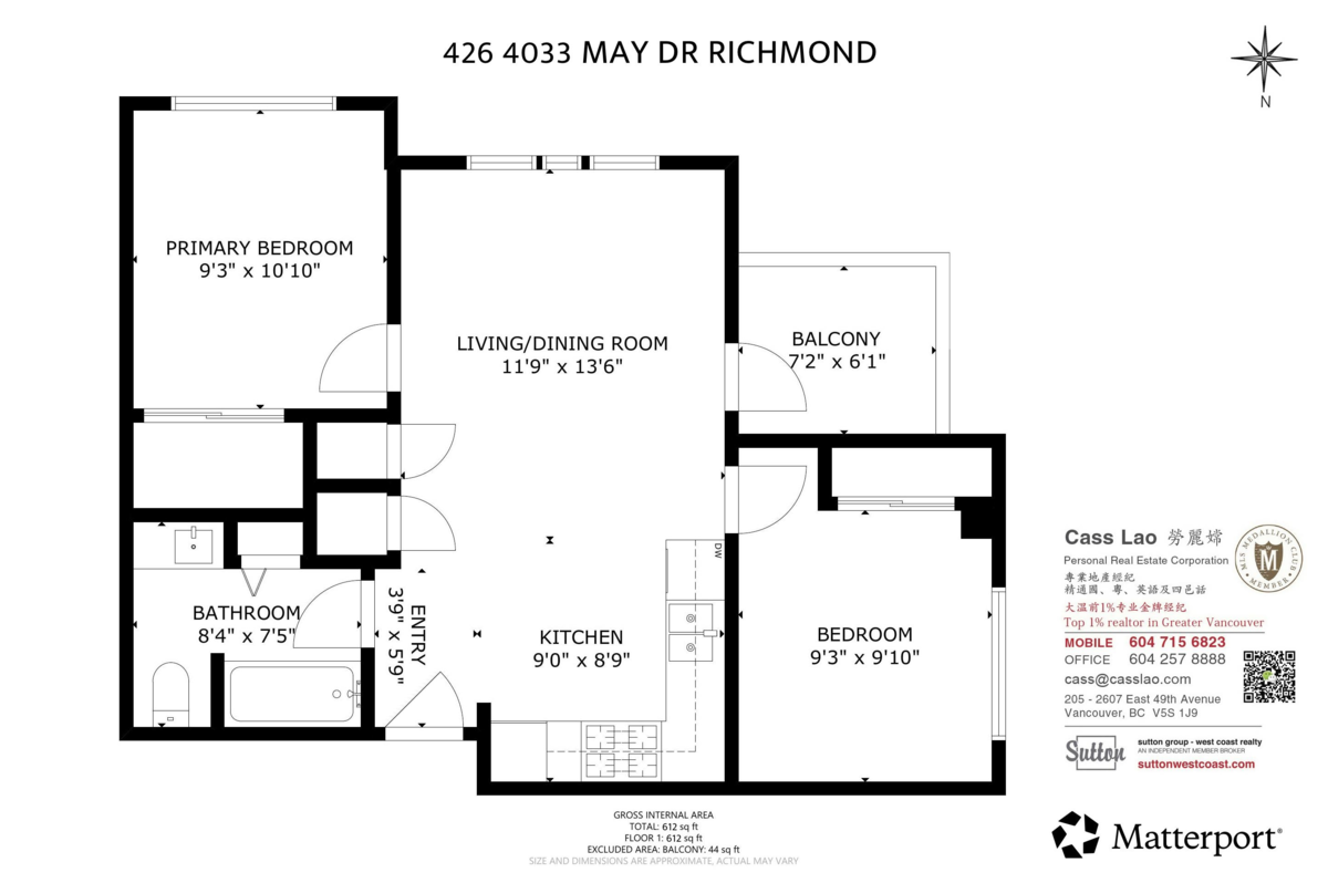 This southwest-facing corner home is situated in Richmond’s rapidly growing Alexandra Park neighbourhood. Flooded with natural light from large, unobstructed windows—rare in this high-density area—the home offers a bright and airy living experience. The functional split-bedroom layout ensures excellent privacy, while built-in A/C provides year-round comfort. Modern interiors feature wood flooring throughout and stainless steel appliances. One parking stall is included. Enjoy unbeatable convenience just steps from Walmart, Central at Garden City, restaurants, shops, parks, and public transit. The building is both pet- and rental-friendly. An exceptional opportunity to own a bright two-bedroom corner unit at outstanding value—ideal for first-time buyers. Open House Jan 10 & 11, 2026 2PM-4PM.