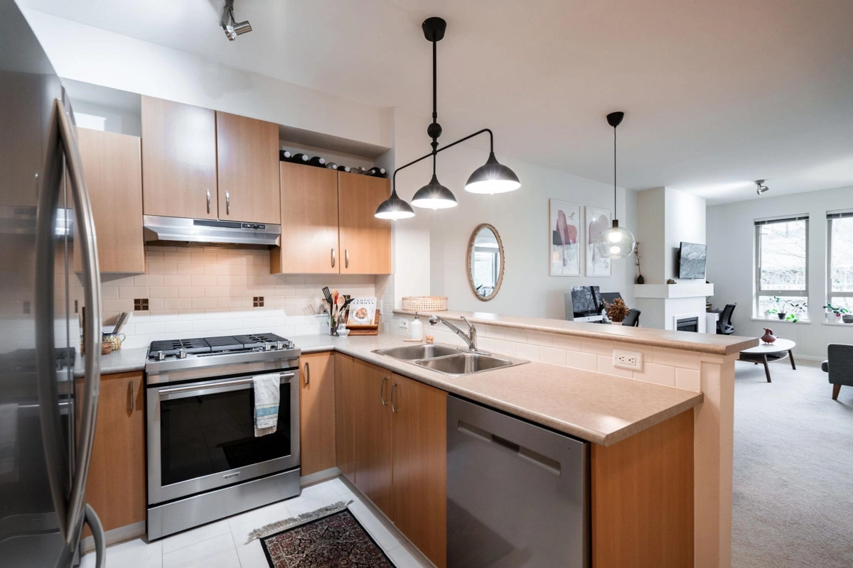 The one you've been waiting for! Welcome to Inglenook (by Polygon) - We have a beautiful 2 Bedroom / 2 Bathroom, top floor unit with 9' ceilings and tall windows. Northern exposures have seasonal mountain views, followed by quiet mature trees in the spring and summer. Kitchen and bathrooms have updated tile floors. Newer appliances - including gas stove. Updated lighting in kitchen, dining and bedrooms. Large covered patio with enough room for a full patio set and bbq - updated with raised wooden deck tiles. Walkability? we’ve got it - Rocky Point Shoreline, Suter Brook, Brewers Row all outside your door. Strata includes access to the canoe club with pool, fitness centre, meeting rooms, tennis and more. Great school catchments and transit all in walkable distances.