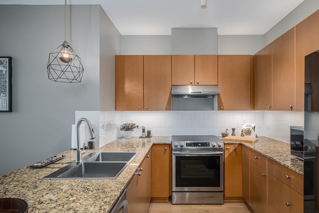 Welcome to your new home in the heart of Guildford. This newly renovated 3 bedroom and den is the ideal space for first time homebuyers who are looking to start their life and/or family in a great location or empty nesters who are wanting to stay in an easily accessible community and still value the space of a bigger home. Primary bedroom has an ensuite washroom and a walk-in closet. Walking distance to the mall, various stores, restaurants, and parks as well as sharing a building space with different stores. Amenities include a huge courtyard, swimming pool, separate guest room, sauna gym, and clubhouse. Unit also comes with two parking stalls with EV charging option, ensuite storage as well an additional storage in the parking area, and a carwash area. Close to Johnston Heights Secondary