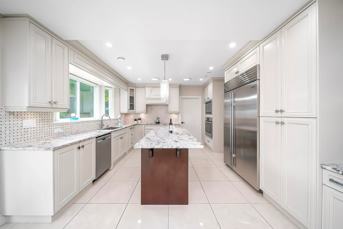 Rarely available luxury south-facing corner-lot home with panoramic Fraser River views in the desirable South Slope neighbourhood. Minutes to Metrotown, Crystal Mall, Station Square, and a variety of dining and amenities. Set on a quiet cherry blossom–lined street, offering an ideal balance of privacy and convenience. This custom-built residence features premium finishes and high-end appliances including a Sub-Zero refrigerator, Wolf range, and Kohler fixtures. Spa-inspired amenities include a steam room, jacuzzi tub, body jets, and home theatre. Exterior finished in elegant natural limestone. Main floor includes a self-contained in-law suite. Additional features include radiant floor heating, air conditioning, HRV system, central vacuum, and an EV-ready two-car garage.