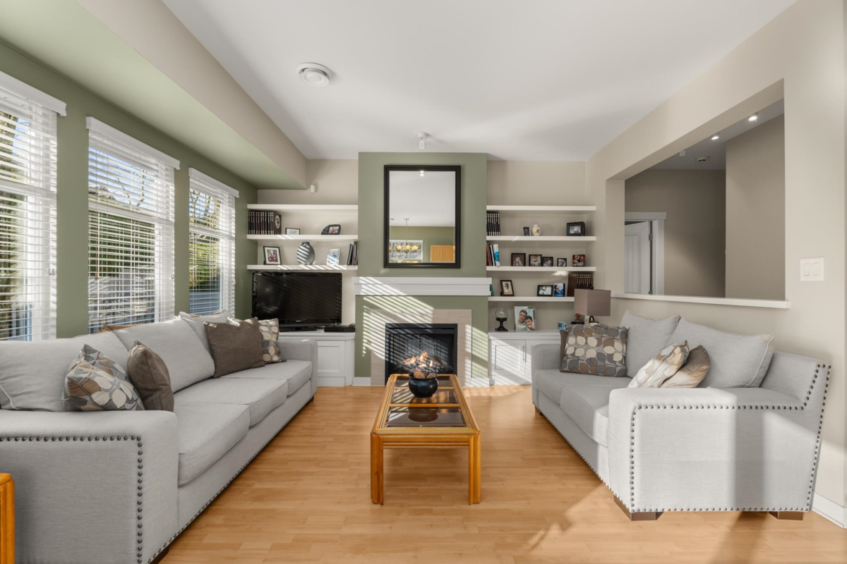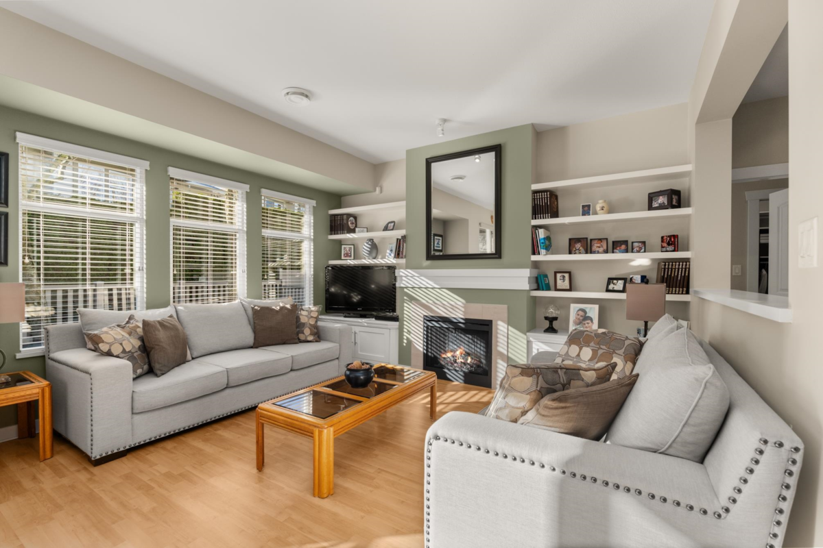 Welcome to Gillis Walk, a coveted adult community that has it all! Over 1800 sqft of easy living with the primary bedroom on the main floor, a large living room with a gas fireplace & a dining room that is ready to host Sunday dinners. The generous family room has another fireplace & ample seating for everyone. The kitchen has an eating area that walks right out (no stairs here!) onto a large south-facing fully fenced backyard with a patio for outdoor dining. Two additional spacious bedrooms upstairs, plus a flex landing space & a full bath that adjoins one of the bedrooms. Amenities galore: outdoor pool, lounge, kitchen, pool table, 2 gyms, floor hockey, guest suites, theatre & so much more. Close to Fresh Street market, restaurants & shopping.