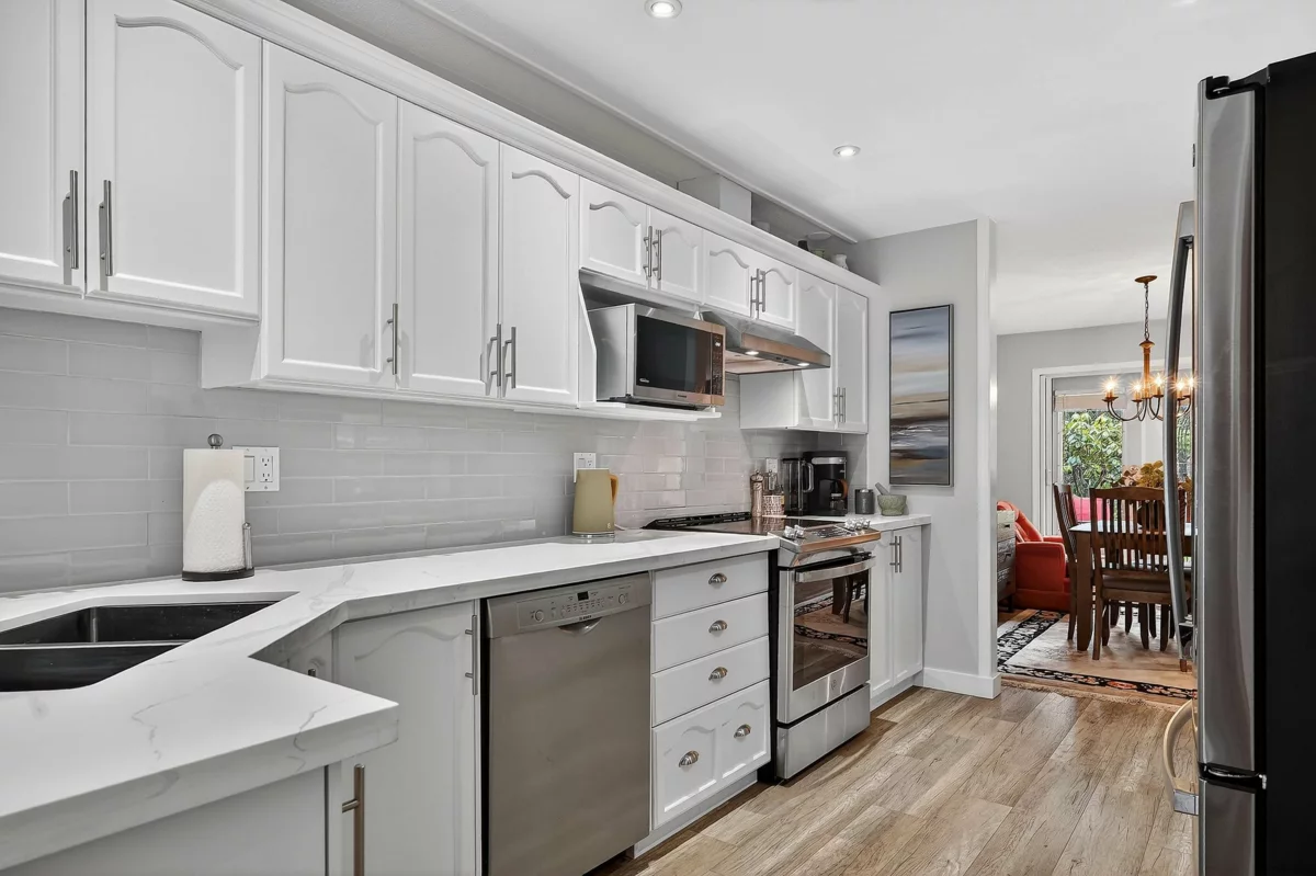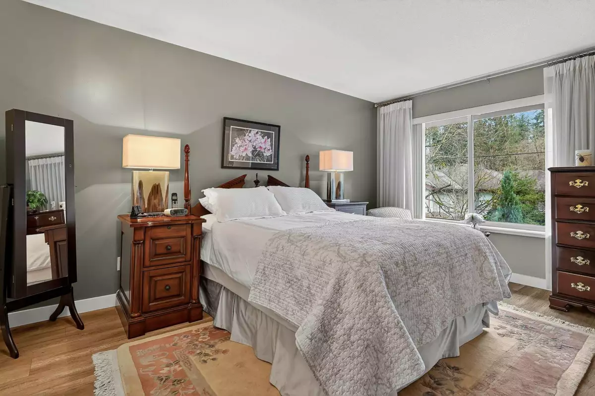 RENOVATED 2-bedroom, 2 bathroom home in 55+ Fraser Glen community. Recent updates include laminate flooring, carpet on stairs and fresh paint throughout. The kitchen boasts refreshed cabinets, quartz countertops, tile backsplash, and updated stainless steel appliances. Enjoy casual dining in the eating area off the kitchen, with a separate formal dining room for special occasions. The living room features a cozy gas fireplace and large windows that overlook the private backyard. Step outside to a south-facing patio and beautifully landscaped garden. Upstairs, you'll find two spacious bedrooms and 1 full bathroom. Repiped to PEX throughout. The clubhouse offers an indoor pool, fitness room, party room, and workshop. RV parking available. Just move in and enjoy! OPEN HOUSE Sun Feb 15 12-2pm.