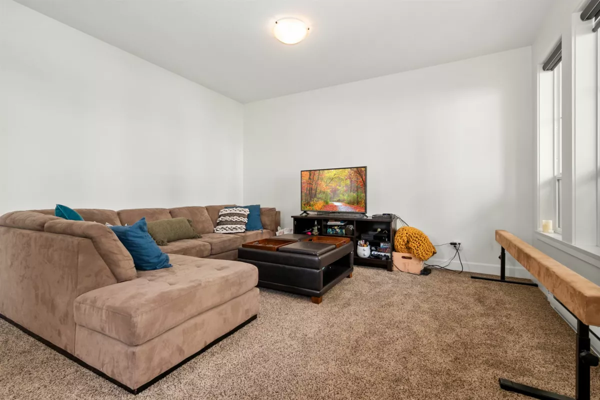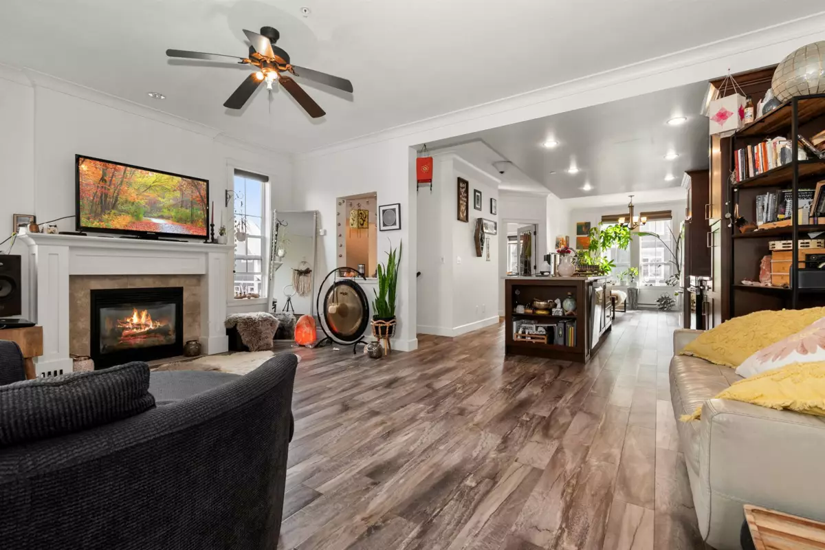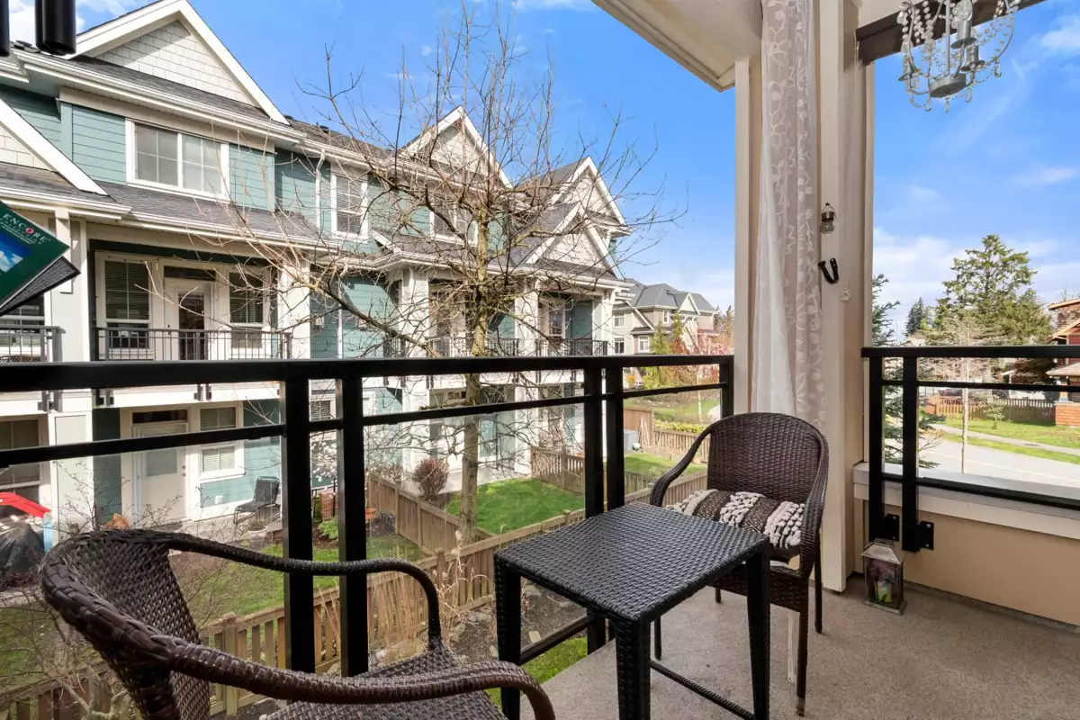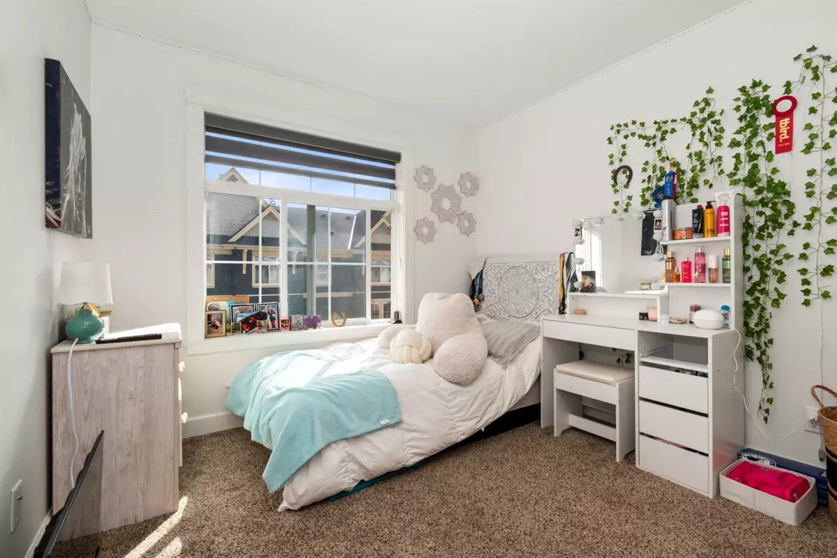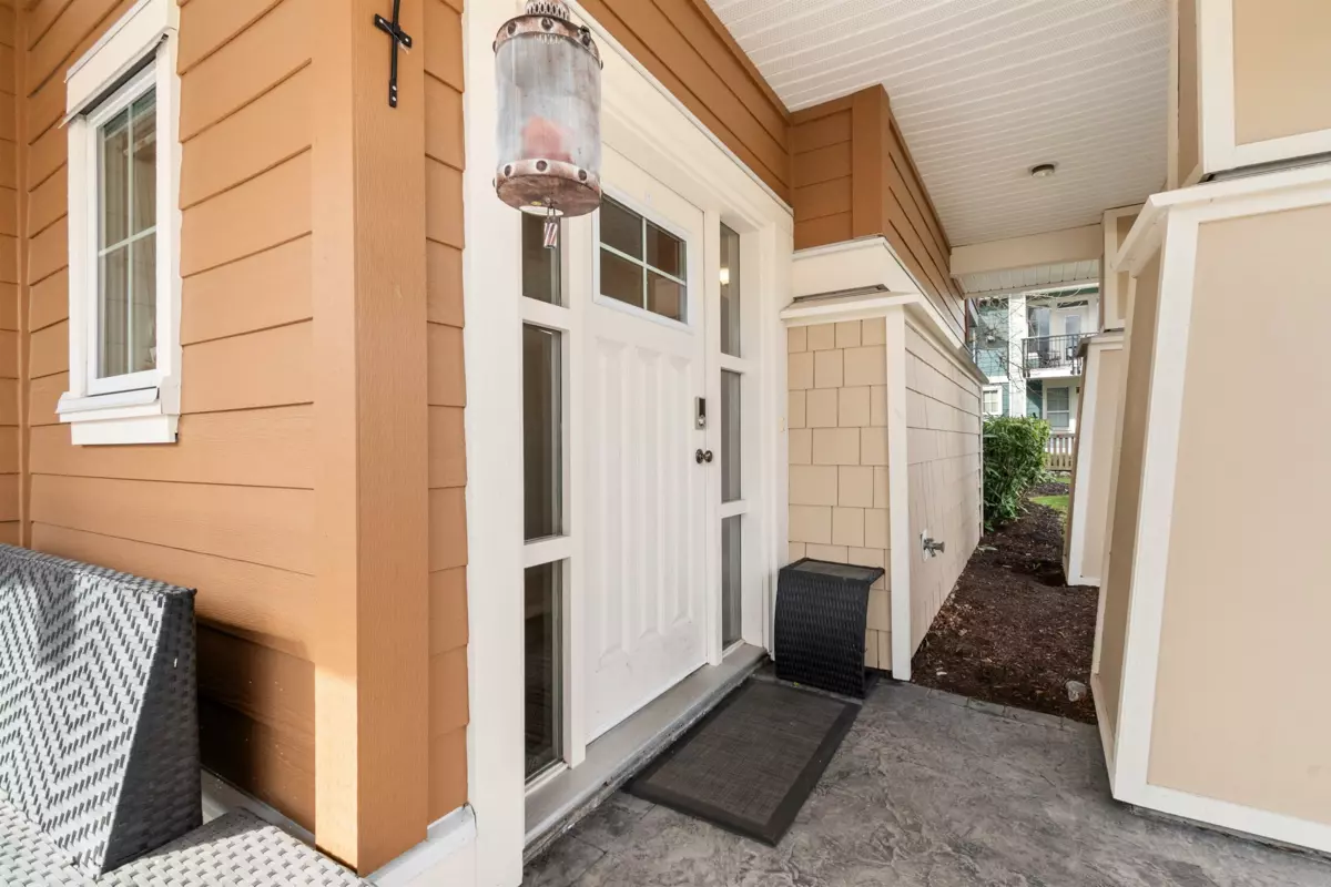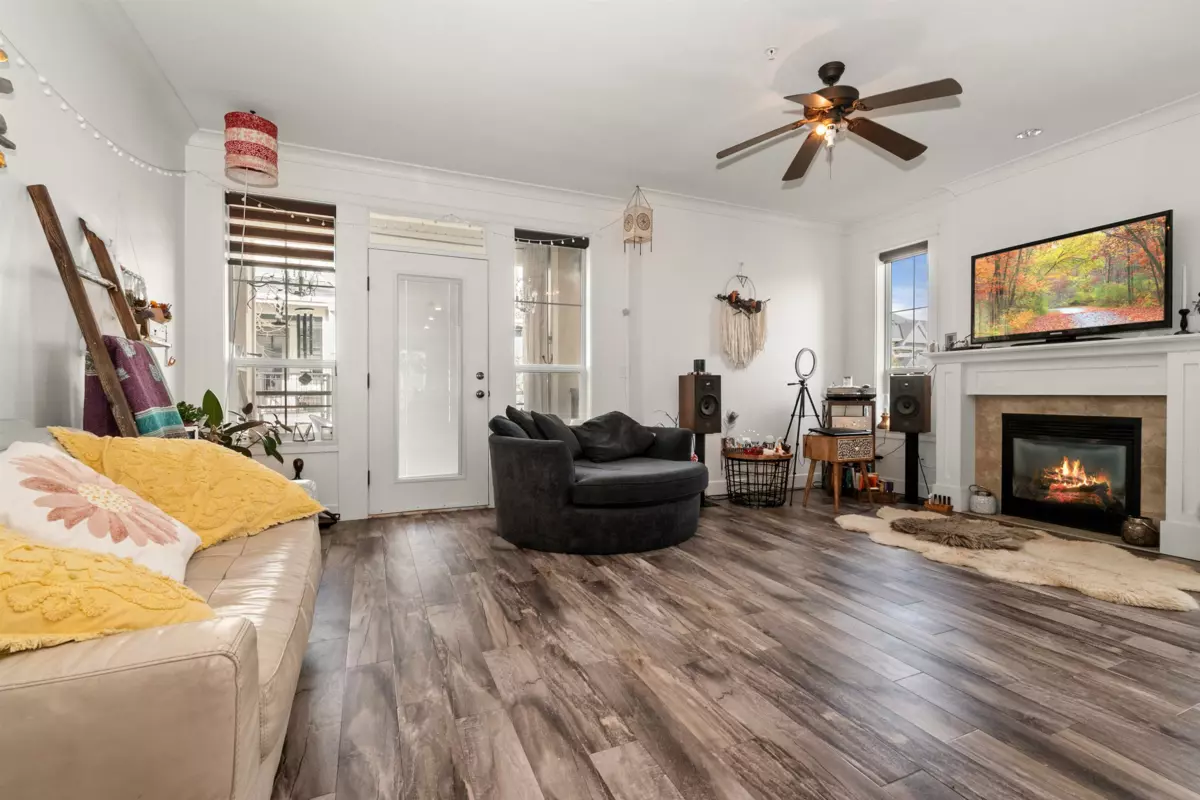 End-unit townhome in Garrison Crossing’s Park Gate community. This immaculate 2072 sqft residence is bathed in natural light. Open-concept main level features a spacious kitchen with stainless steel appliances, quartz countertops, a large island, a formal dining space, a secondary kitchen/pantry zone, an expansive living area with natural gas fireplace, a view-facing deck, a den, and a 2pc bath. Upstairs includes a roomy primary suite with a walk-in closet and ensuite, two additional sizable bedrooms, a 4pc bathroom, and laundry facilities. The basement boasts a massive rec room with private entry and a modern fireplace feature wall. Unit has oversized single garage, stamped concrete-covered patio, and fenced backyard. Steps from Garrison Plaza, Cheam leisure center, schools & rivers!
