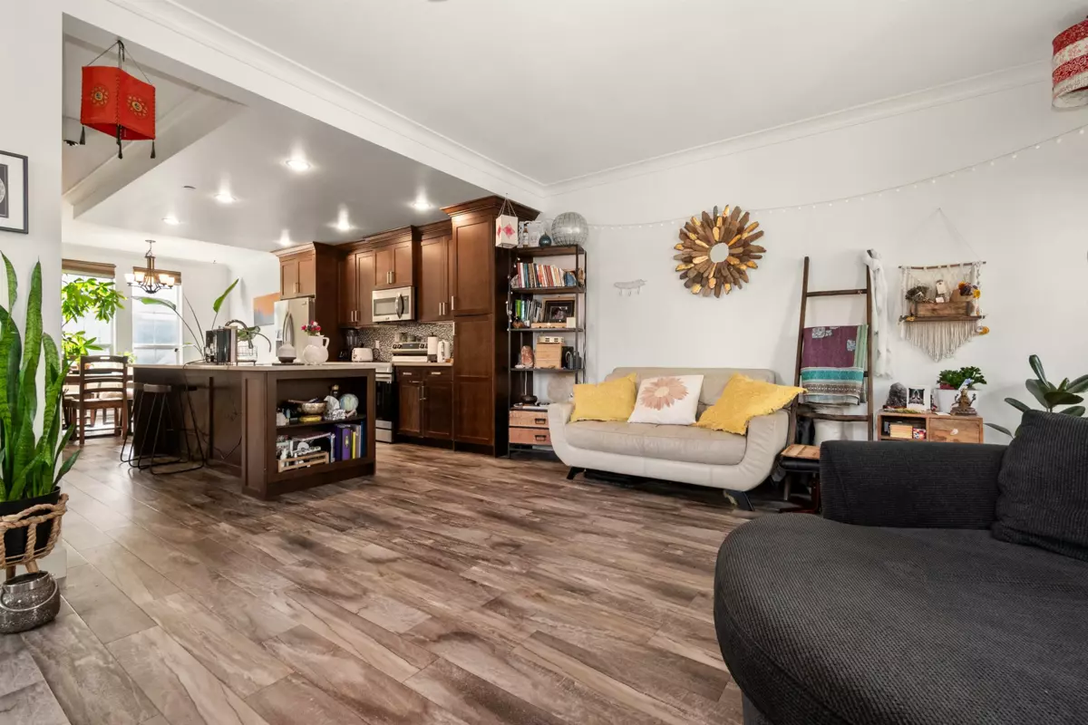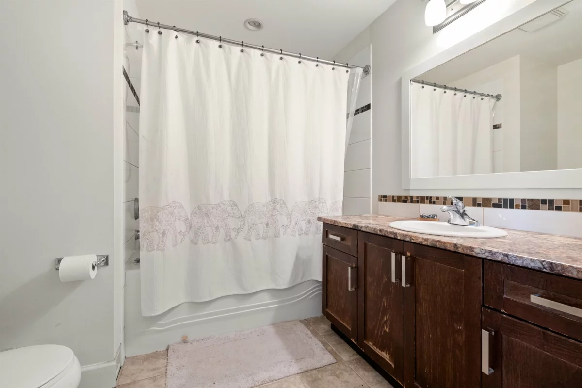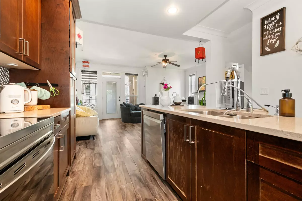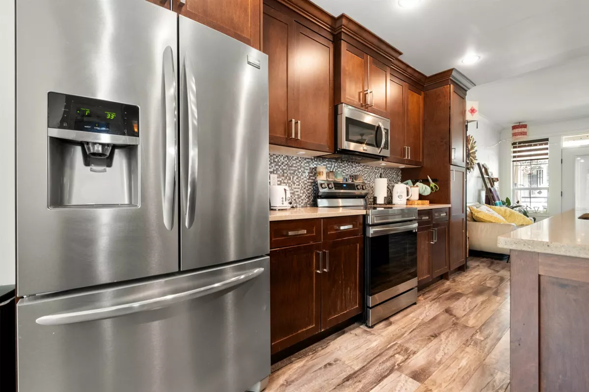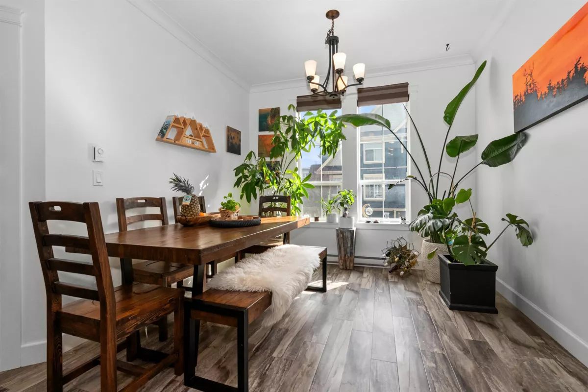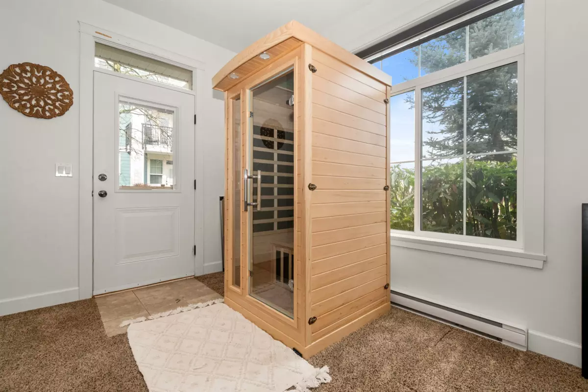 End-unit townhome in Garrison Crossing’s Park Gate community. This immaculate 2072 sqft residence is bathed in natural light. Open-concept main level features a spacious kitchen with stainless steel appliances, quartz countertops, a large island, a formal dining space, a secondary kitchen/pantry zone, an expansive living area with natural gas fireplace, a view-facing deck, a den, and a 2pc bath. Upstairs includes a roomy primary suite with a walk-in closet and ensuite, two additional sizable bedrooms, a 4pc bathroom, and laundry facilities. The basement boasts a massive rec room with private entry and a modern fireplace feature wall. Unit has oversized single garage, stamped concrete-covered patio, and fenced backyard. Steps from Garrison Plaza, Cheam leisure center, schools & rivers!