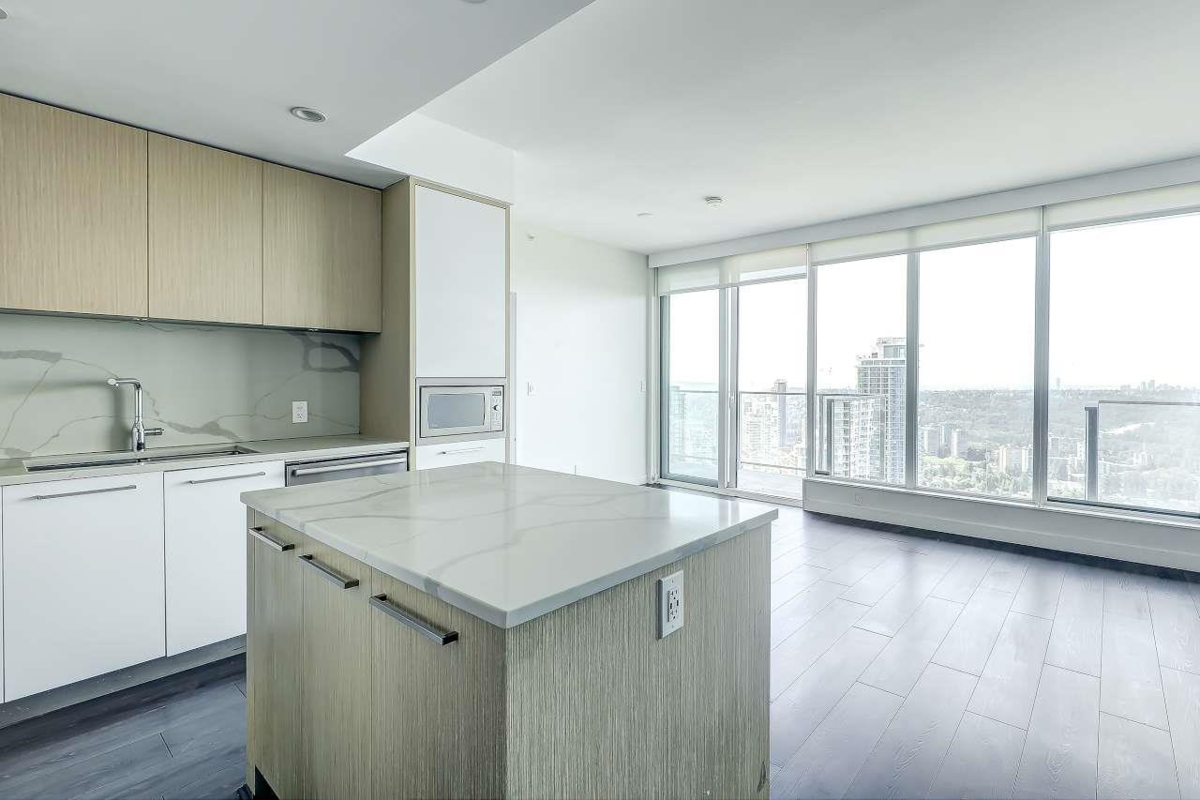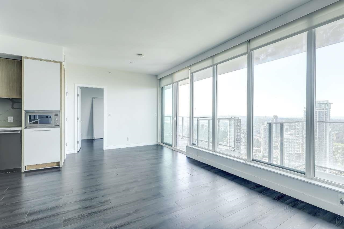 Clarke & Como by Marcon - Court Ordered Sale - Outstanding South-West sweeping views from the 43rd floor. Surrey City, Fraser River, New Westminster, Burnaby Metro-Town and Downtown Vancouver city views from this split 2 bedroom, 2 full bathroom, plus den boasting 850 sq. ft. with full air conditioning. Dual exterior decks featuring 260 sq ft, one off master bedroom with the other off living room. New laminate flooring throughout foyer, kitchen, dining and living room. Unit condition is average at best. Building facilities are top notch featuring 20,000 sq. ft. of amenities including Sky Lounge, guest suites, B- court, sauna, music room, yoga studio, karaoke room and full service concierge. Located right across the street from Evergreen Burquitlam station. Open Sunday Oct 19 2-4pm