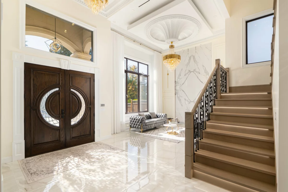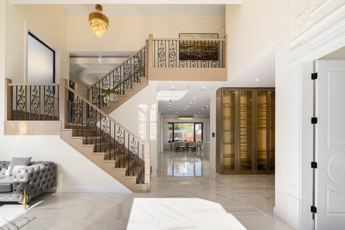 Experience luxury living in this stunning home, offering 4,058 sq.ft. of exquisite living space on a 9,027 sq.ft. lot facing the golf course. This residence showcases unique and elegant European interior design with a grand high-ceiling entrance and spacious living areas filled with natural sunlight. Featuring 5 bedrooms and 5.5 bathrooms, beautiful detailed crown mouldings, and top-quality craftsmanship. The dream kitchen is equipped with top-of-the-line appliances, including La Cornue French luxury range, Vent-A-Hood fans, Wolf stove, and a huge German Liebherr double fridge, all complemented by real marble finishes, premium cabinetry, and elegant tile work. Additional features include two balconies, A/C, custom wine display, radiant heating, etc.. Steps to park, schools and mall.