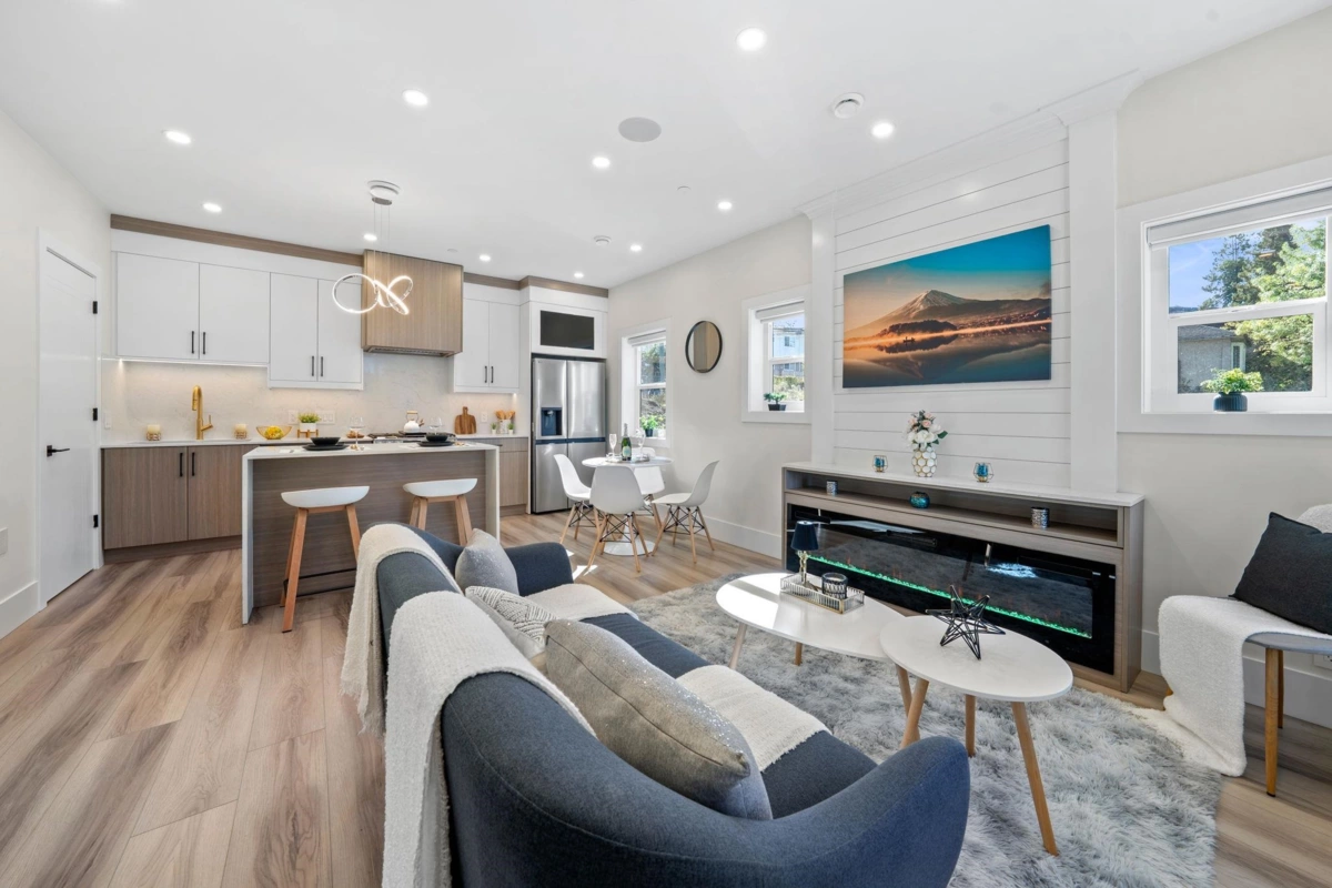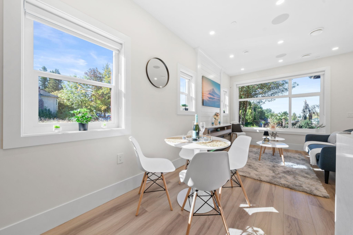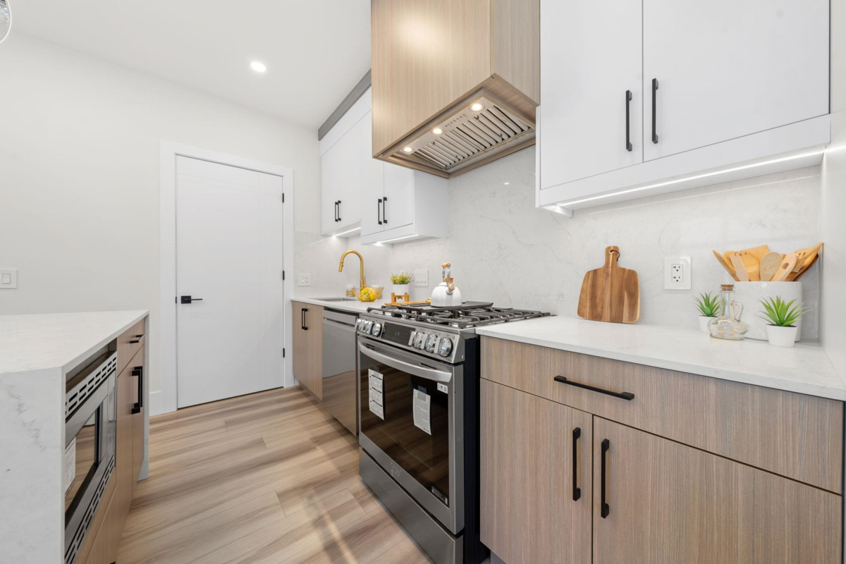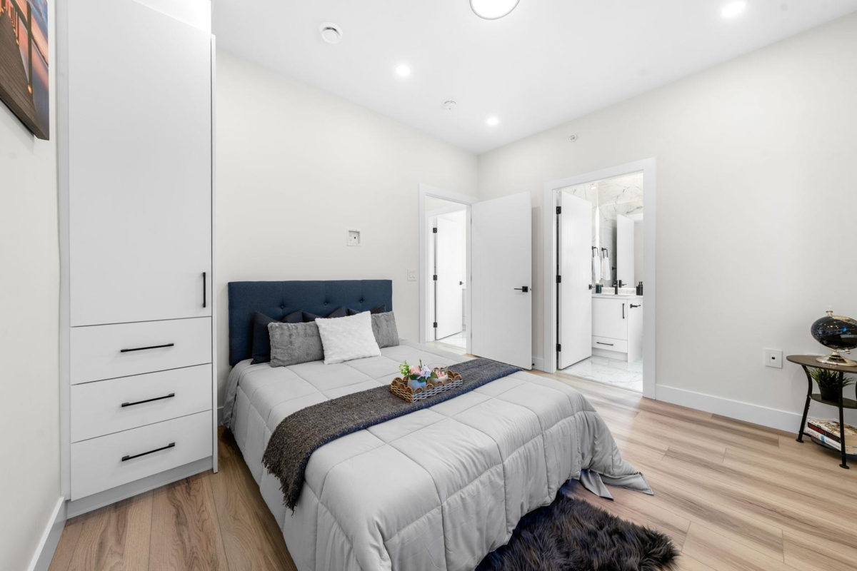 Welcome to this brand-new front duplex over 1528 sqft, expertly crafted to blend modern design with everyday comfort. The main floor showcases an open-concept layout with a sleek kitchen featuring elegant countertops, a spacious dining area, and a bright living room highlighted by expansive windows. Upstairs offers three generously sized bedrooms, including a luxurious primary suite complete with a private ensuite. The lower level includes a versatile recreation room with potential to be converted into a one-bedroom suite, ideal for rental income or multi-generational living. With high ceilings, contemporary finishes, and a sought-after location, this home presents exceptional value and endless possibilities. Open House Sunday Dec 7 2-4 pm